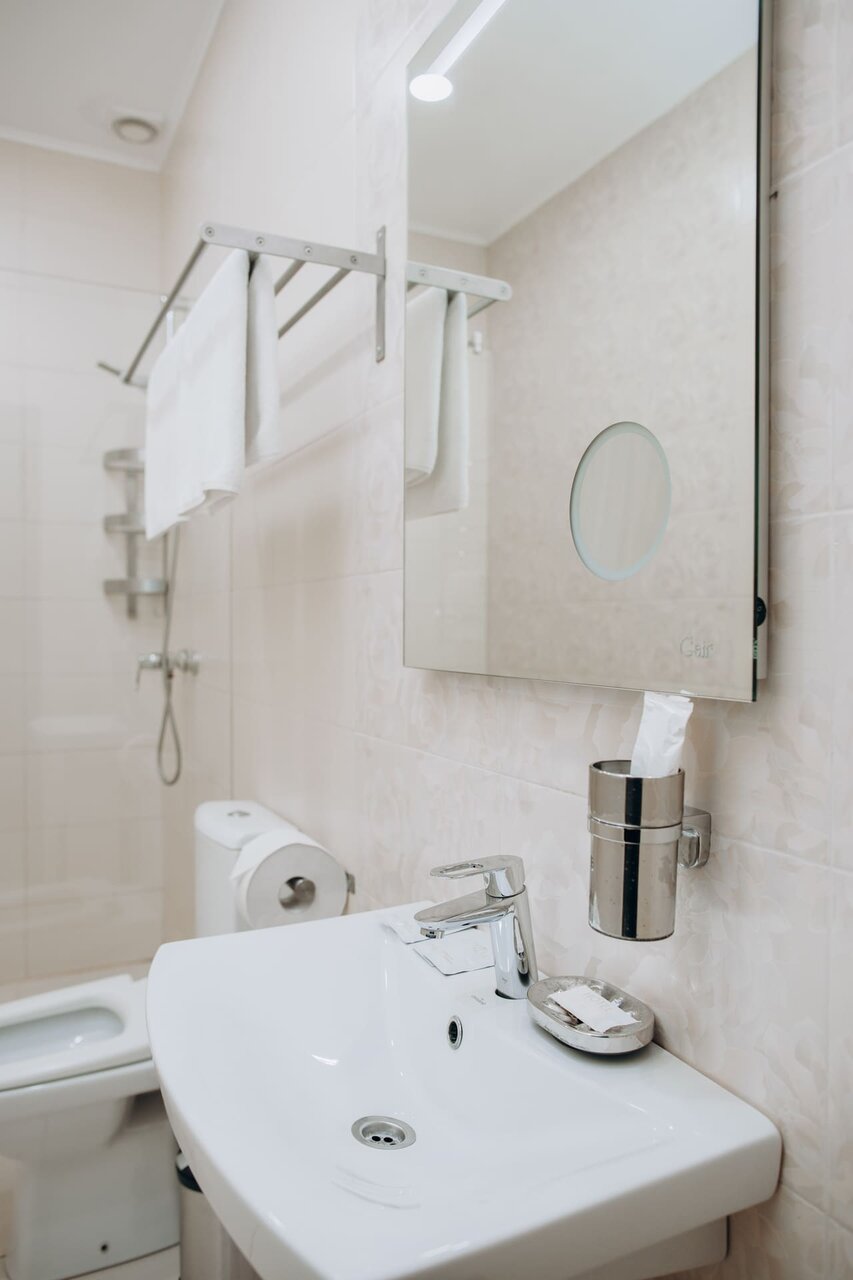- Неудобная ванная комната (узкая раковина, запах).