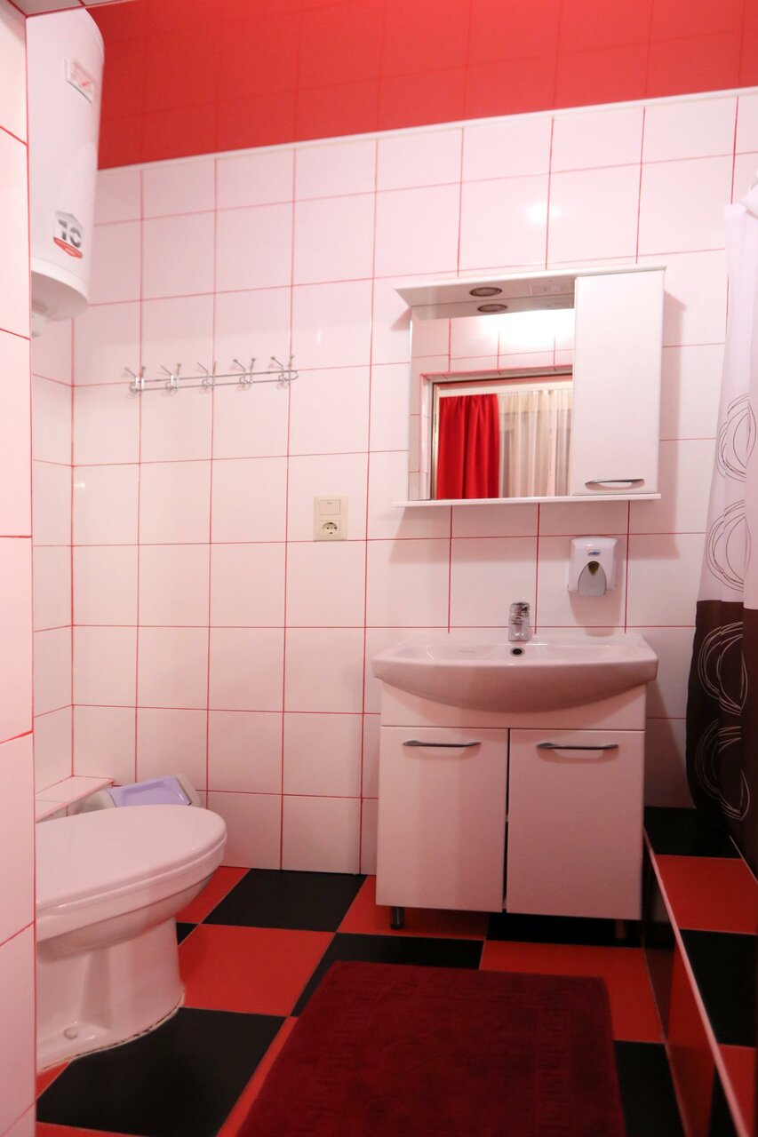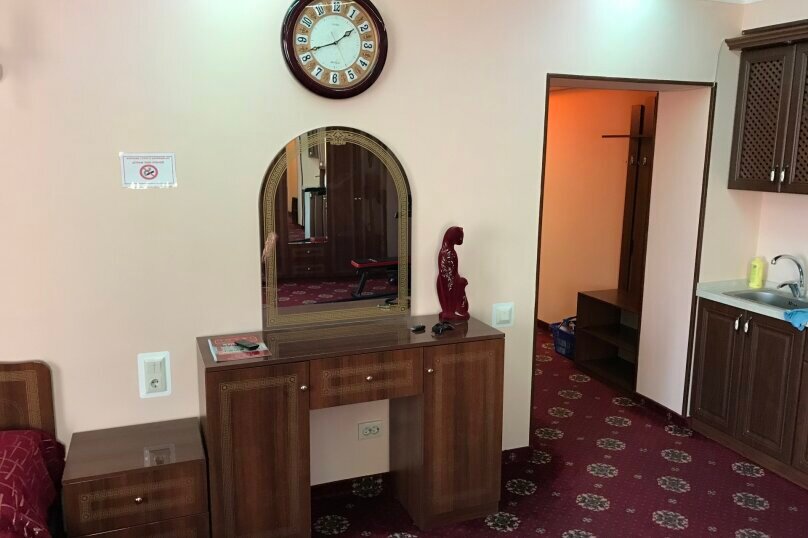 Жили в номере-студии на первом этаже в начале января. Отличный, теплый номер. В номере двуспальная кровать и раскладной диван. Душ. Чайник, холодильник, микроволновая печь, посуда!!! Есть всё, начиная от шампуня и заканчивая халатами!!! Полотенца меняли каждый день, а жили мы только три дня. Замечательные администраторы, которые помогали в любых вопросах!!! Курить в номере нельзя!!!