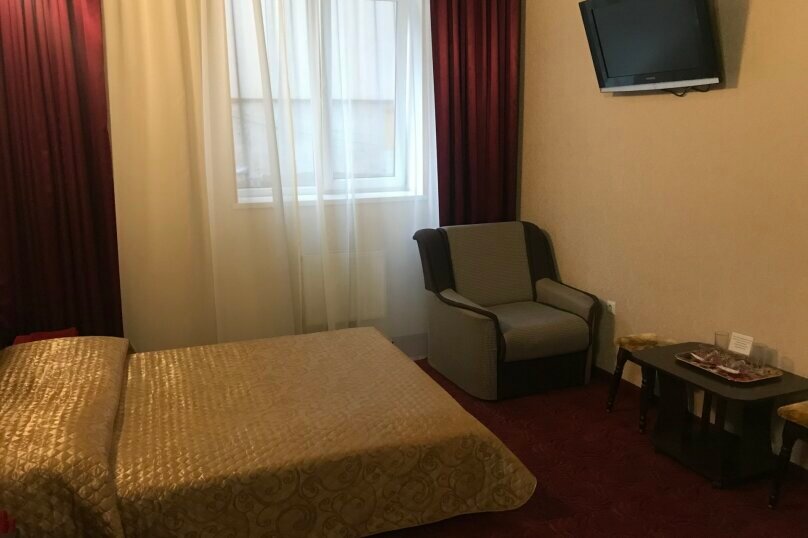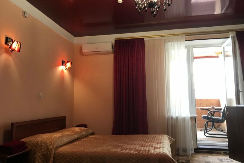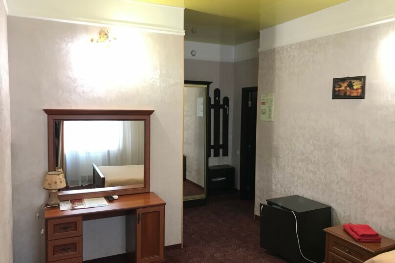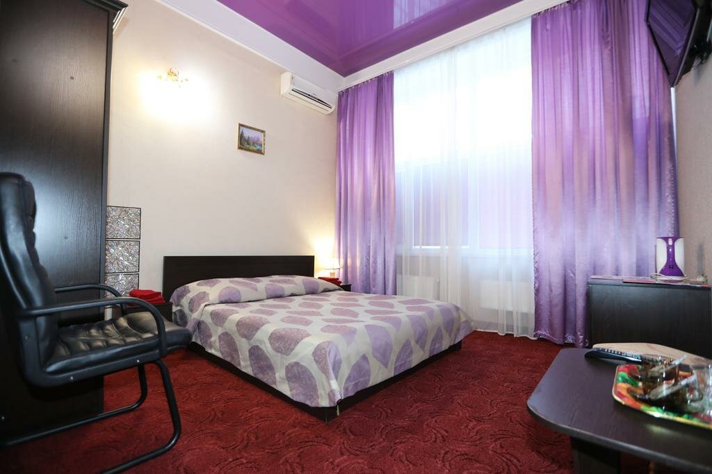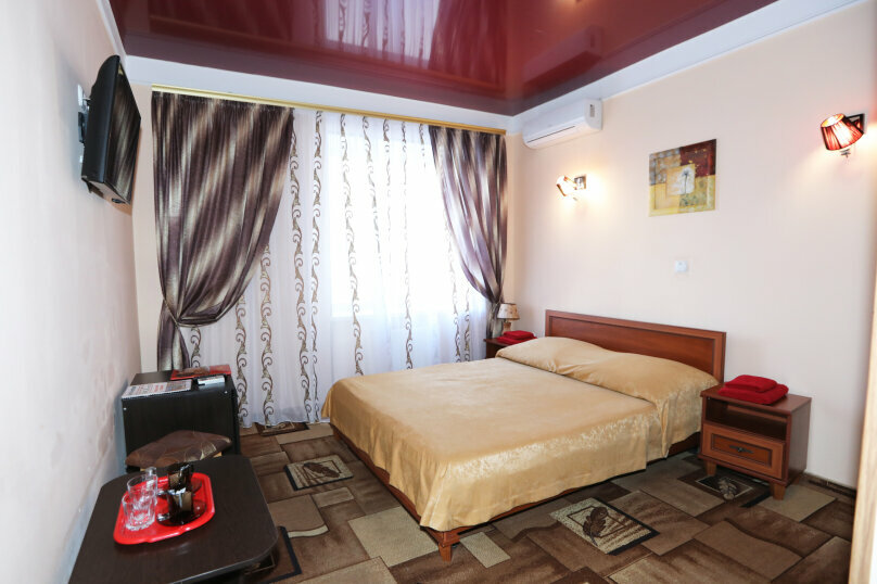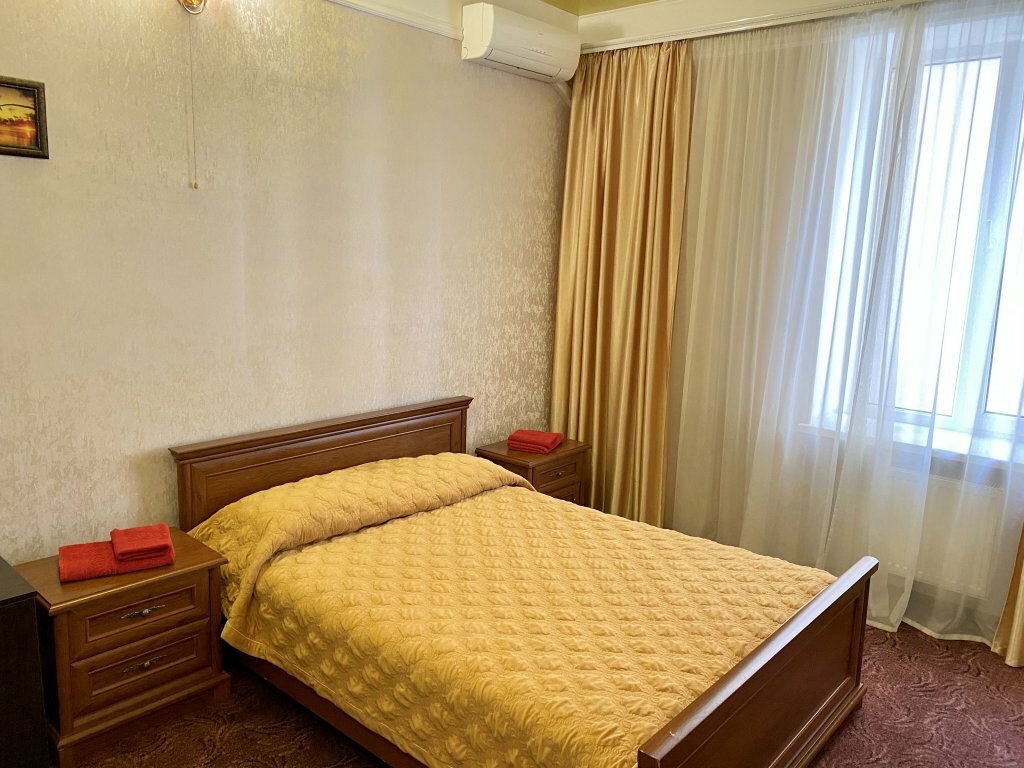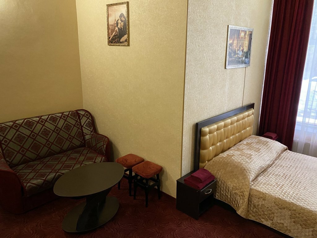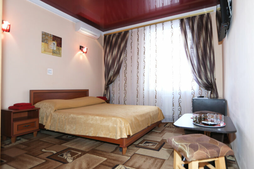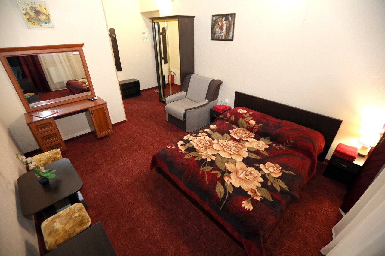 Однокомнатный уютный номер класса полулюкс сделает Ваш отдых по-настоящему комфортным и гармоничным. Приятно порадует сочетание желтого глянцевого потолка с золотисто-бежевыми обоями.
