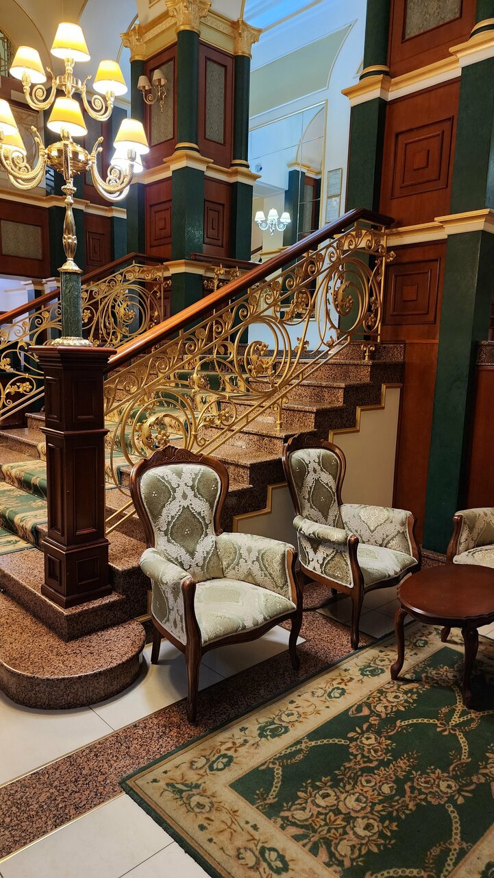 Мощь и помпезность так можно охарактеризовать само здание. Яркое внутреннее убранство (будто попал во дворец) органично сочетается и не несёт в себе современной наляпистости. Приветливый персонал. Сытный и вкусный завтрак. Немного простые номера, но зато просторные и с высокими потолками.