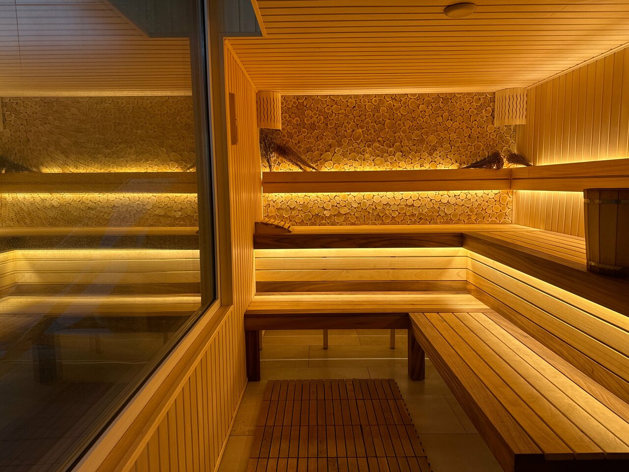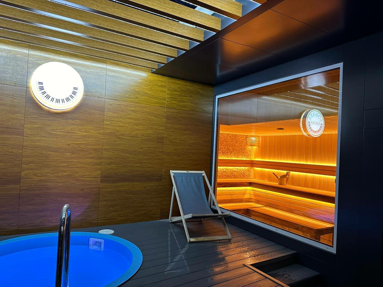 Очень чисто, уютно, классный бассейн и понравилось, что в сауне деревяшки не нагреваются и не обжигают 🙂