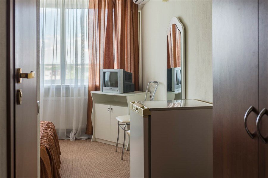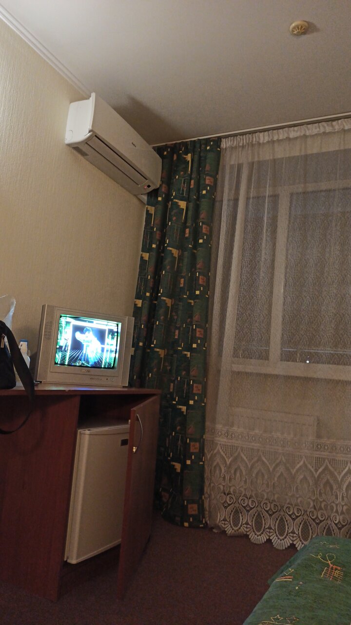 Хуже гостиницы я пока что не встречал, двухместный номер это что-то. Телевизор малюсенький . Номера убитые в хлам. Повсюду синибольные лица ,а цена космос . В ванной плохо работает смеситель. Лифт с сумкой чтобы зайти вдвоём надо ещё постараться. Одна звезда только за кухню и то нет такого прям ВАУ.