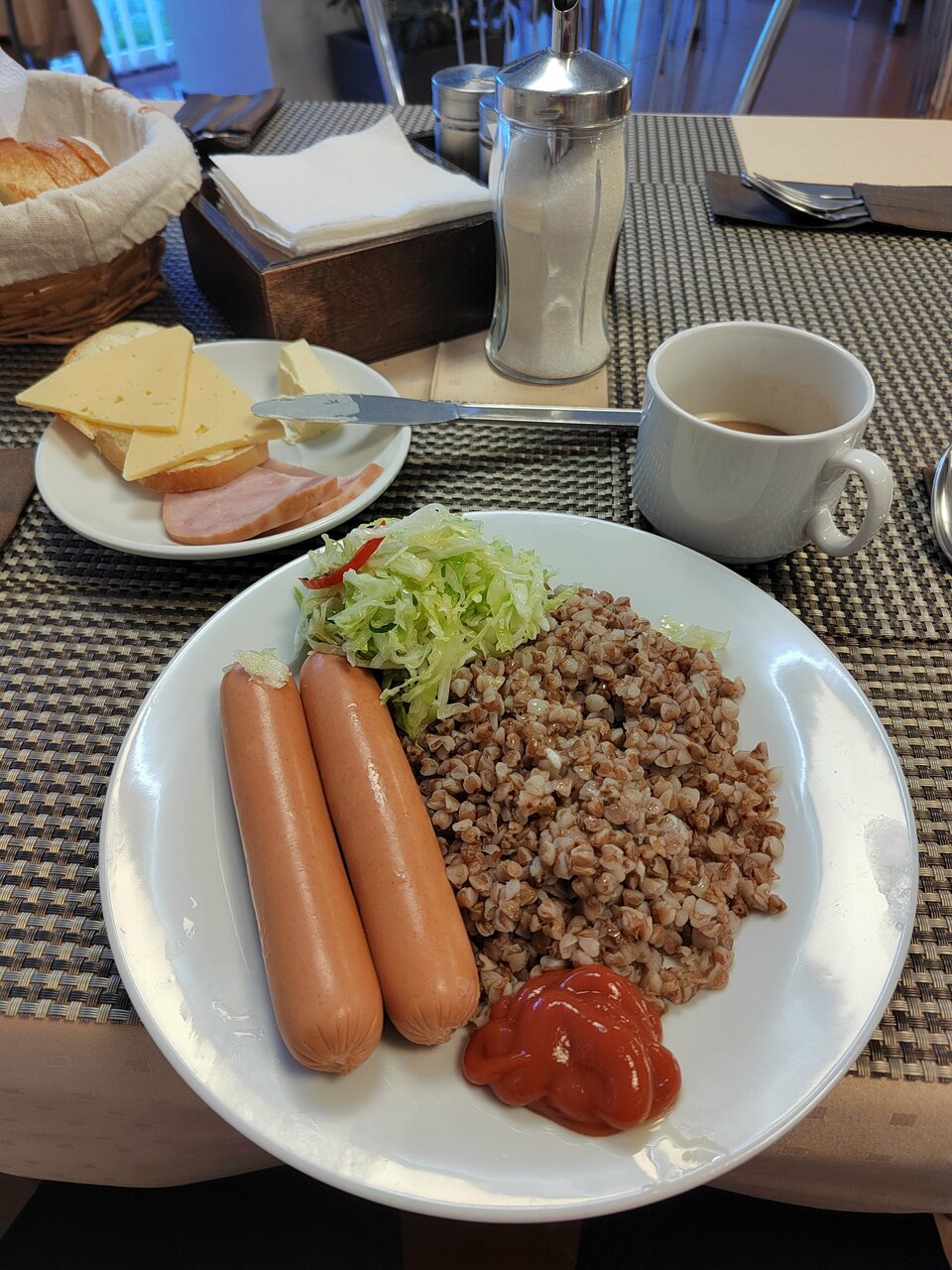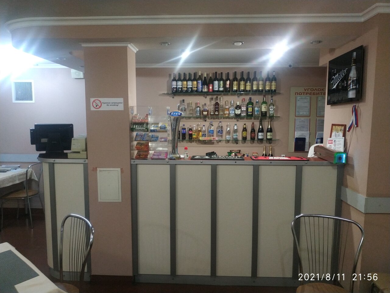 Очень маленький лифт, телевизоры ламповые, кровати совдеповские, стены из фанеры наверное. Приятно удивил завтрак.