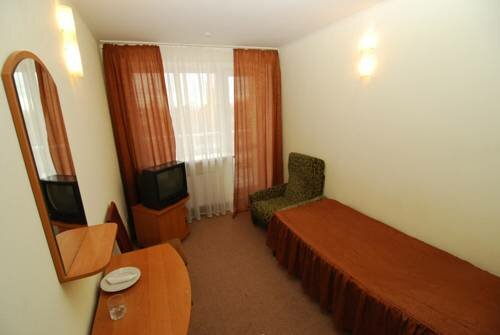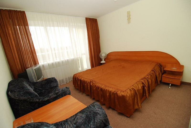 Совок) Брала номер , потому что был дешевый. Номер огромный, но интерьер запылённые кресла. Рядом кладбище, но у меня окно были на школу.