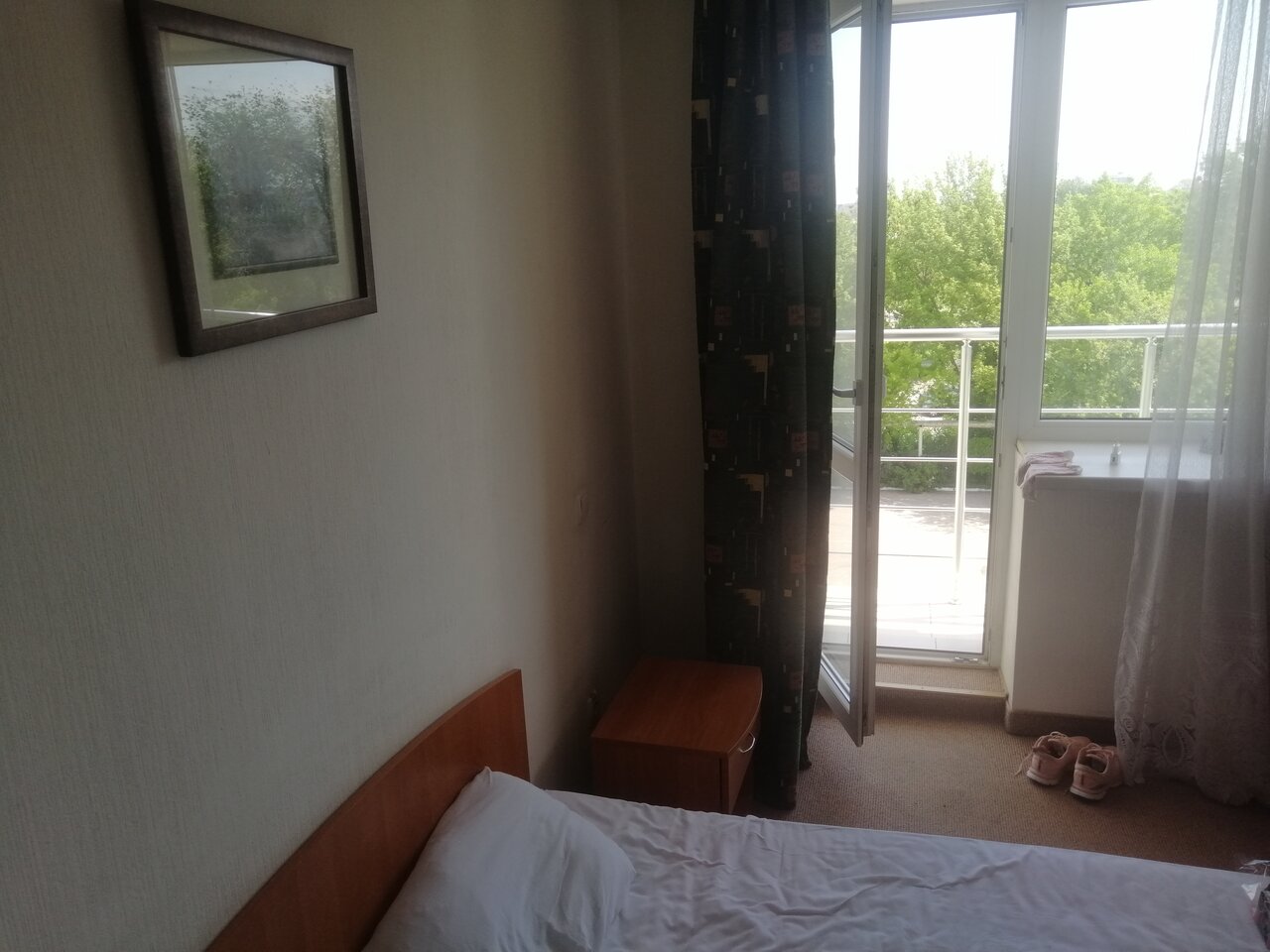 В номере (комфорт) на полу ковролин который никогда не чистили, пыль стоит в воздухе во всём номере, запах ужасный. С утра мучал кашель, у соседей та же проблема. Диван и кресло старое, вонючие! Ванная серая, я думала она грязная, хотя может быть так и есть, в сливе были волосы, мылись в тапках. Нам нужно было после проживания оставить машину на парковке, по сути из за этого и сняли номер, не разрешили даже за доп.плату и об этом только утром сказали, пришлось в срочном порядке искать парковку. Кто пишет положительные отзывы, не понимаю. Не рекомендую. Завтраки хорошие.