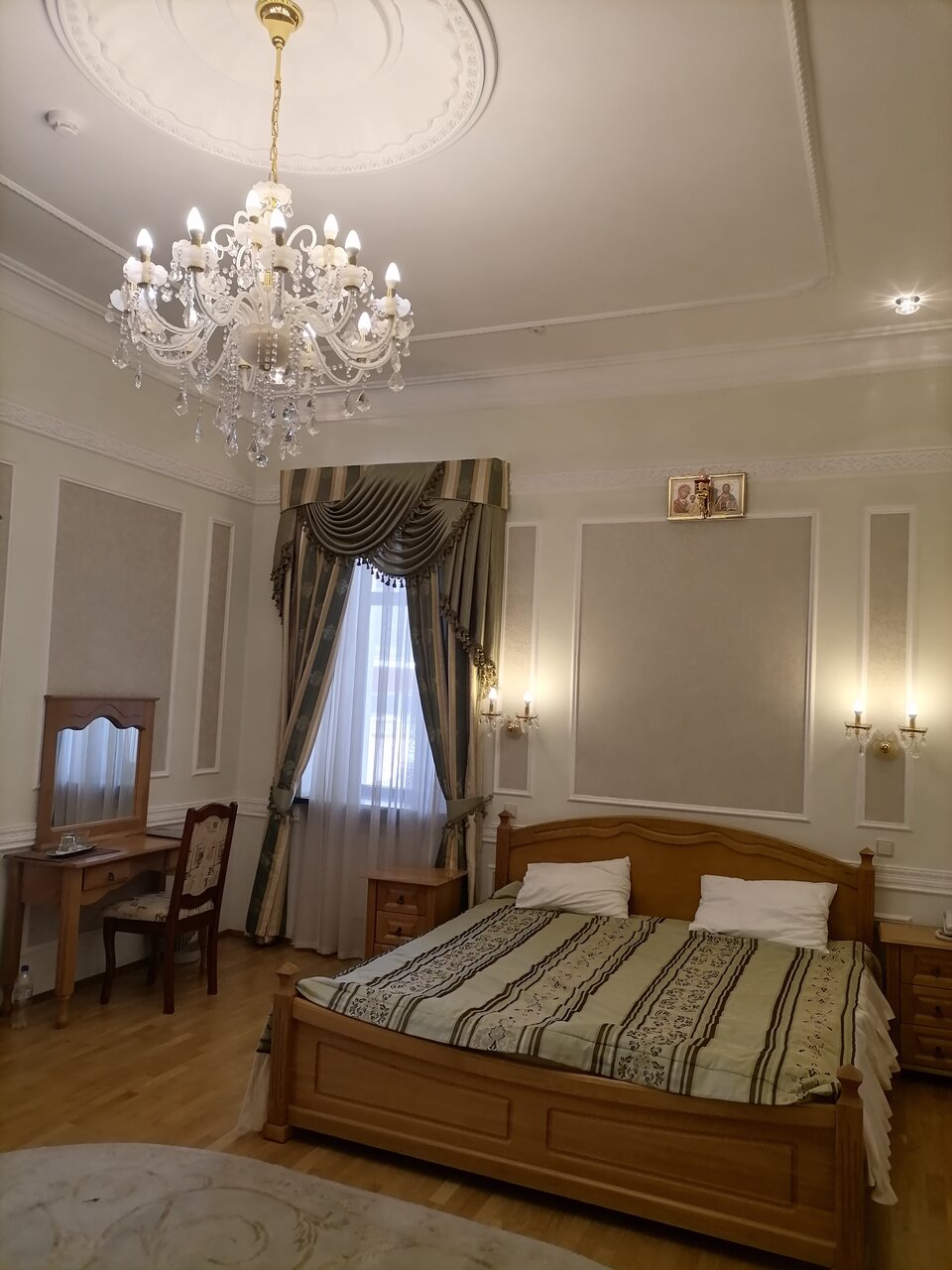 Остановились в этой гостинице на 2 недели по работе с 30-го апреля 2022 года. Снаружи ничем не приметна, зато внутри поражает своей красотой, шиком, уютом, комфортом и чистотой одновременно. Приветливый и отзывчивый персонал на рецепшене, отдельное спасибо за рассказы об истории города, храмов, исторических событиях и людях. Хорошее месторасположение в центре города, уехать на маршрутке можно в любом направлении. Номер Комфорт с двумя комнатами, что очень удобно, если кому-то нужно поработать, а кто-то хочет отдохнуть, есть телевизор, электрочайник, фен, минимальный набор посуды, но если что-то нужно дополнительно, персонал гостиницы с радостью предоставит. Чистый и удобный санузел с душевой кабиной. Банные принадлежности исправно меняют каждый день,как и уборка в номере. Очень вкусные, полноценные и разнообразные завтраки, всегда всё свежее и ароматное. Очень радует глаз наличие живых цветов!