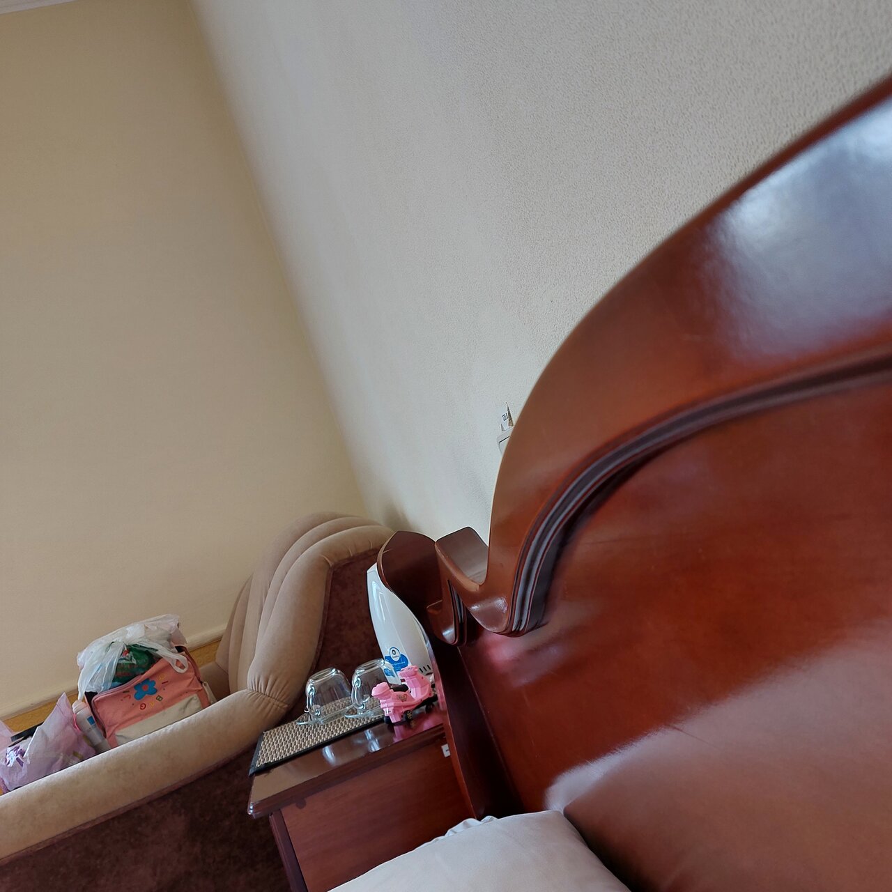 Уставшая мебель. Но все выдержано в стиле старины. Персонал на 5, завтраки вкусные, расположение достойное.