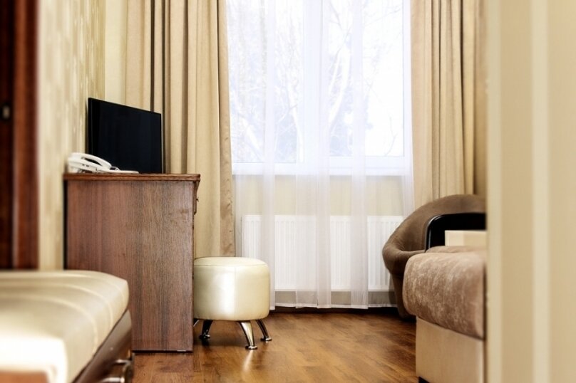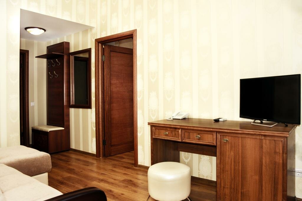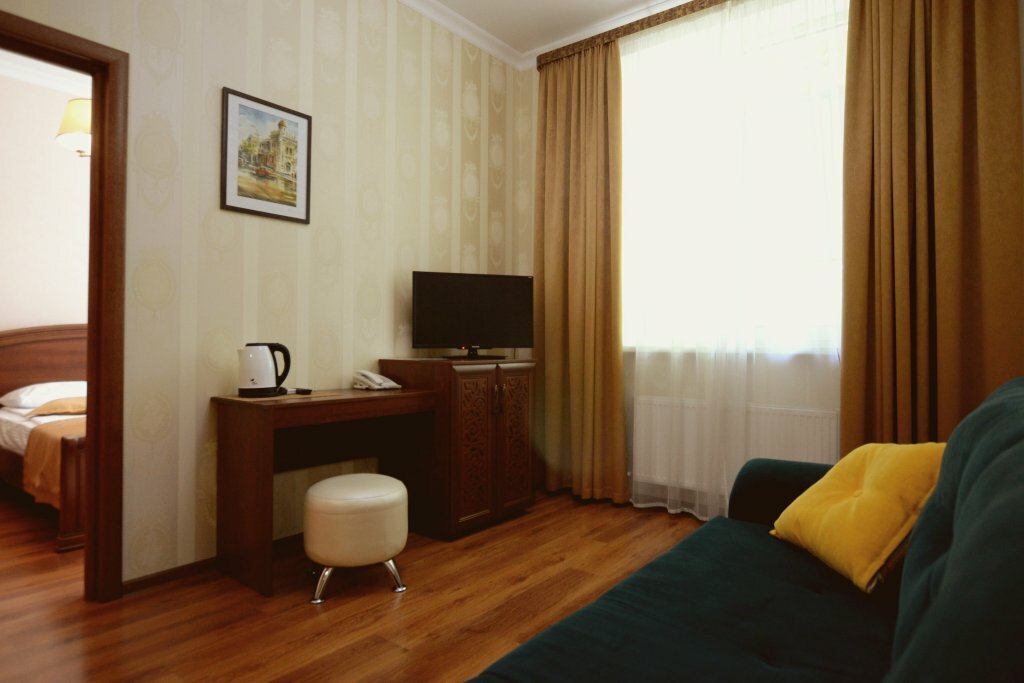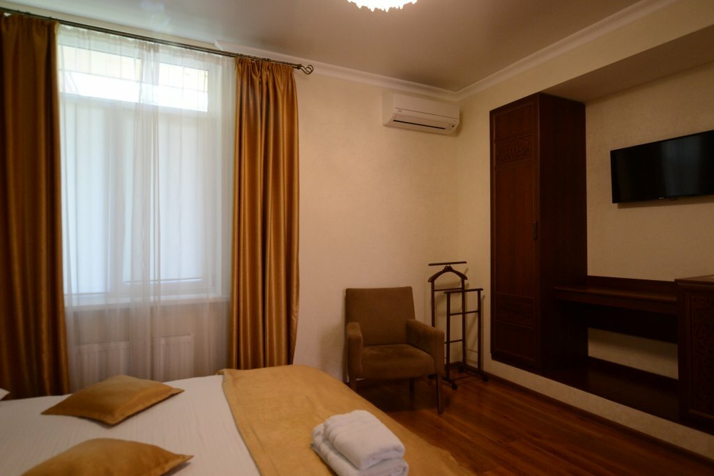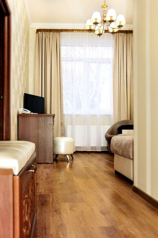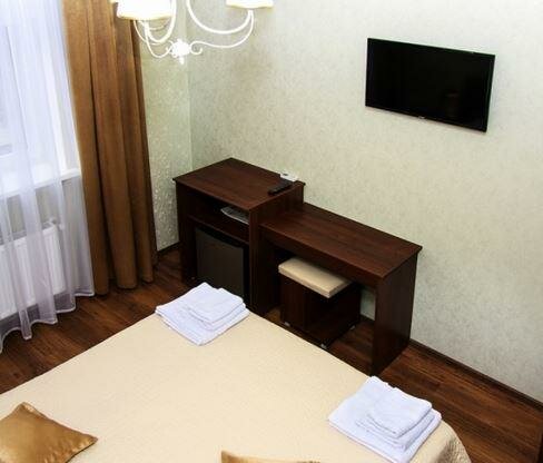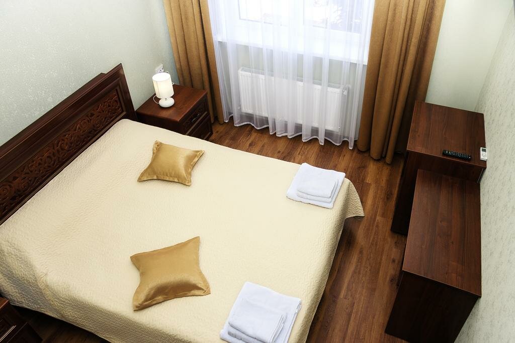 Уютный тихий отель в центре Симферополя. Номер просторный, чистый. Ванная комната с окном, все чисто, приятно. Вежливый и приятный персонал. Обильный завтрак. Парковка рядом с отелем. Также рядом с отелем шикарный ресторан Balkan grill, рекомендую обязательно посетить. Ночевали проездом из Нового Света в Мирный, прекрасно отдохнули.