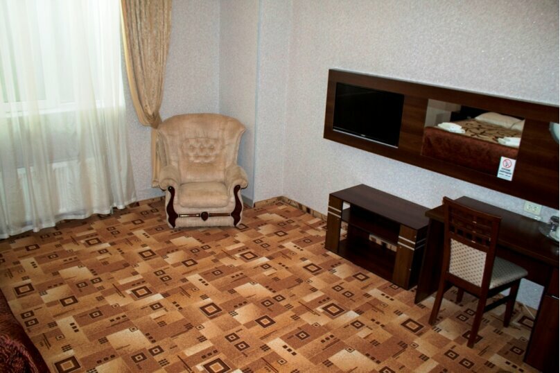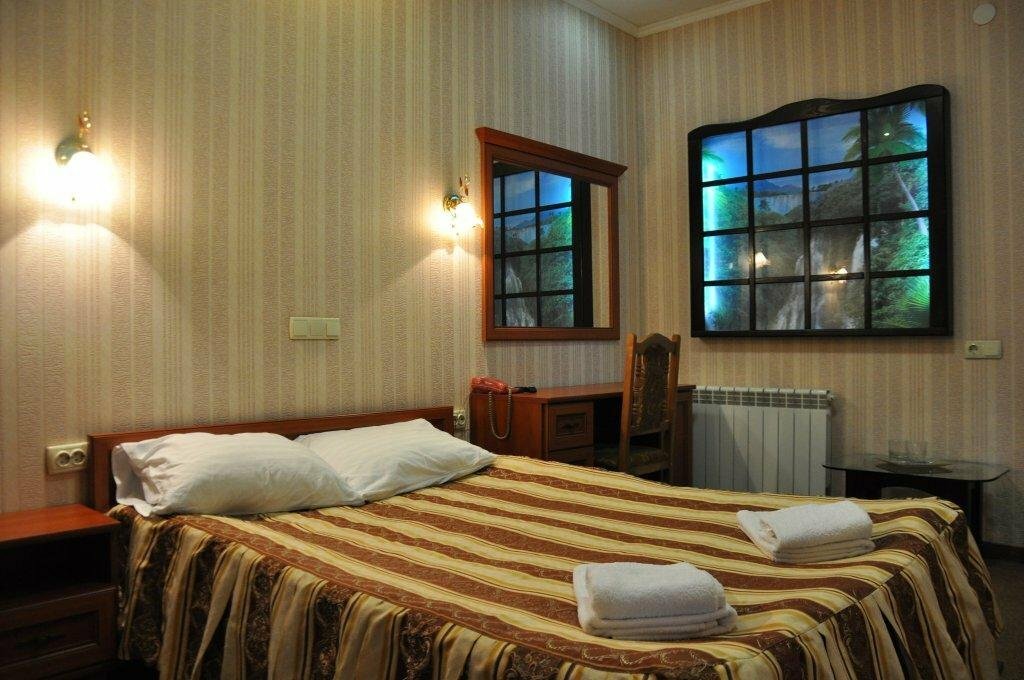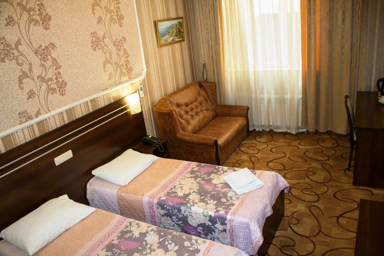 Удобства: — Номера с кондиционером, Wi-Fi, ТВ, холодильником, звукоизоляцией (от 1800 ₽/ночь). — Бесплатная парковка, камера хранения, лифт, прачечная, сейф. — Питание: кафе, ресторан, бар, завтрак по меню (оплачивается отдельно). — Услуги: трансфер, прокат авто, конференц-зал, банкетный зал.