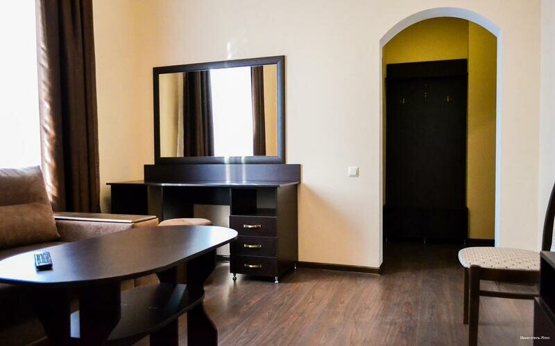 - В номерах:телевизор, зеркало, столик, письменный стол.