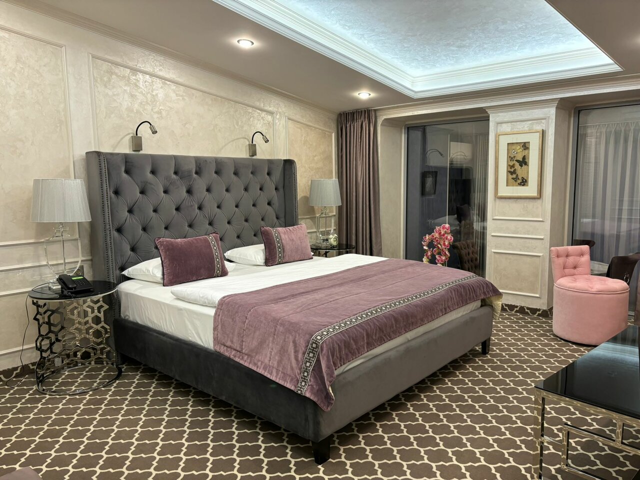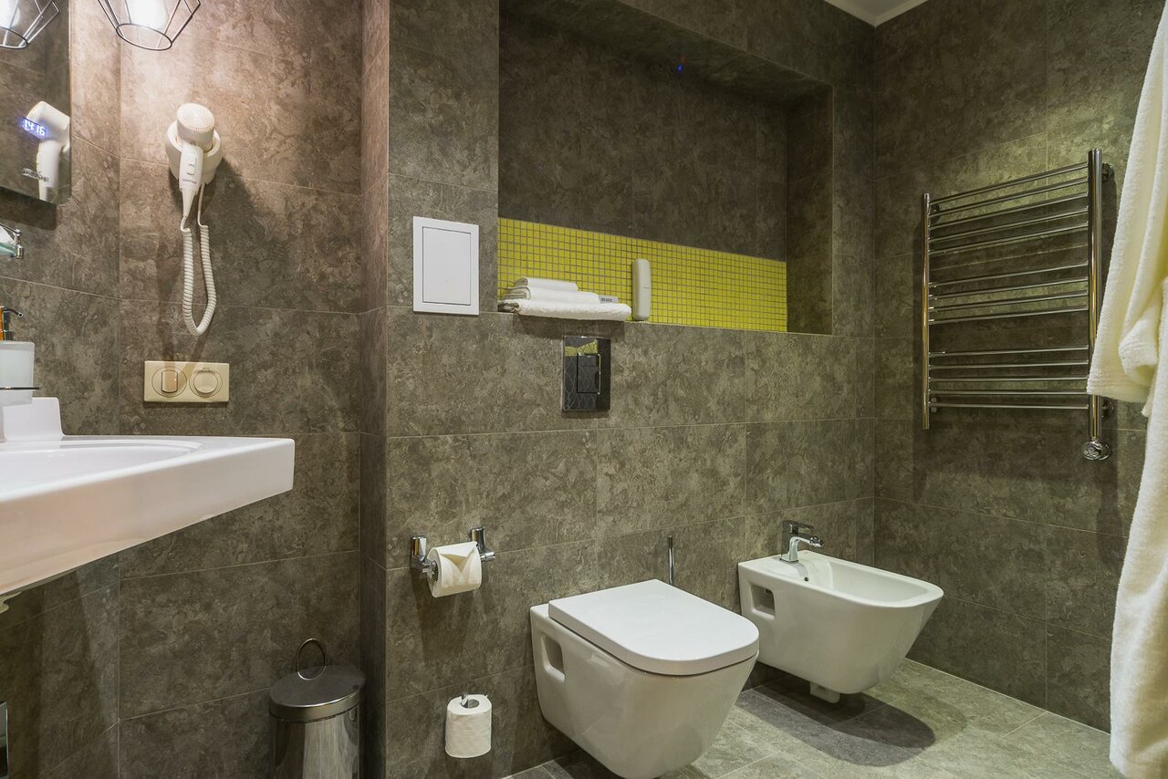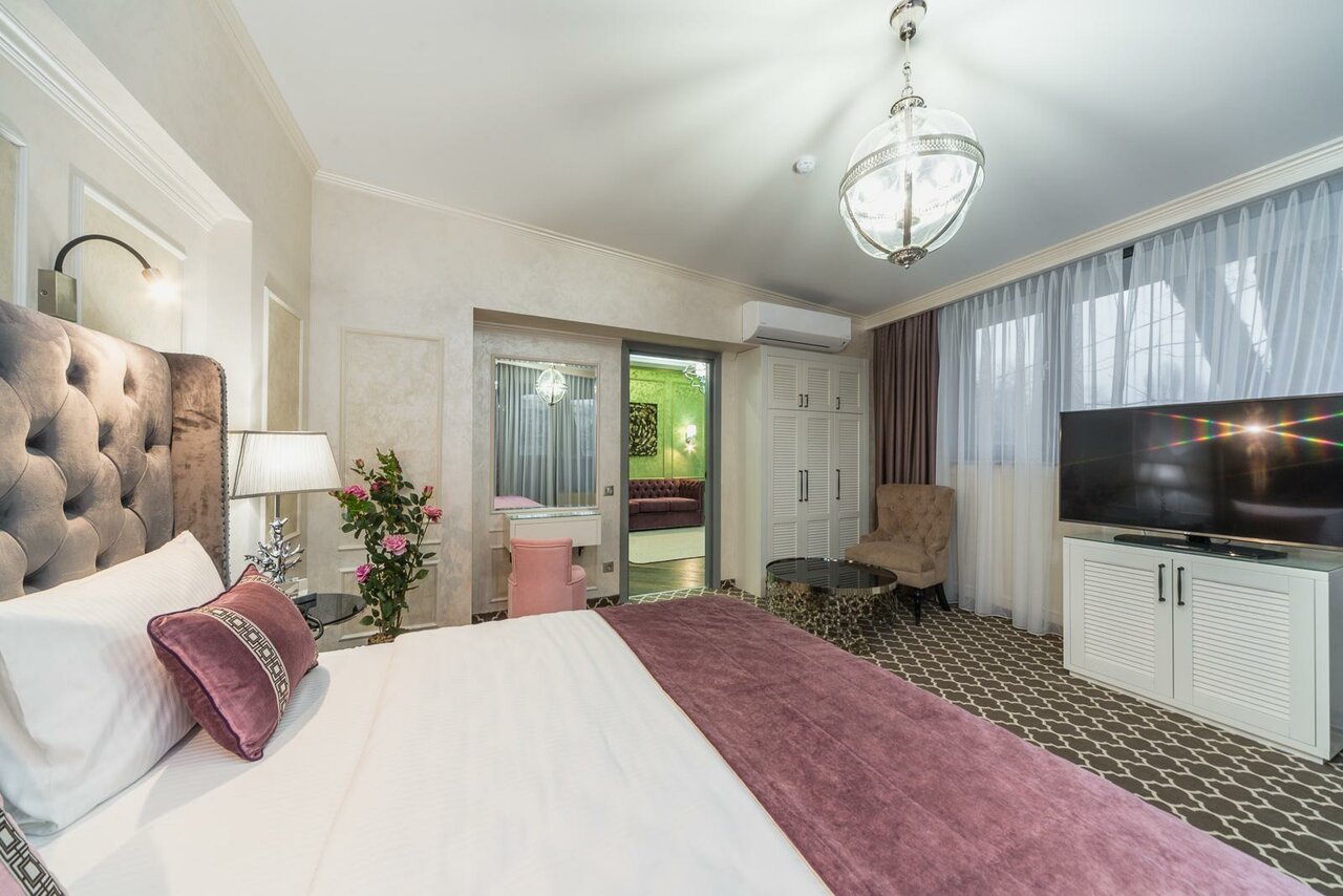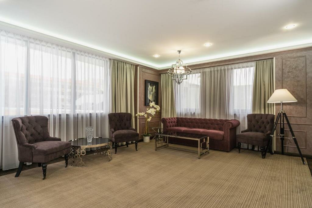 Удобства: — Номера с кондиционером, звукоизоляцией, мини-баром, Wi-Fi, телевизором и санузлом. — Крытый бассейн, тренажёрный зал, сауна, хаммам, джакузи, spa и салон красоты. — Ресторан, кафе, бар, банкетный и конференц-зал. — Бесплатная парковка, трансфер (платный/аэропорт/вокзал), прокат авто. — Услуги для детей: кроватки, меню, стульчики.