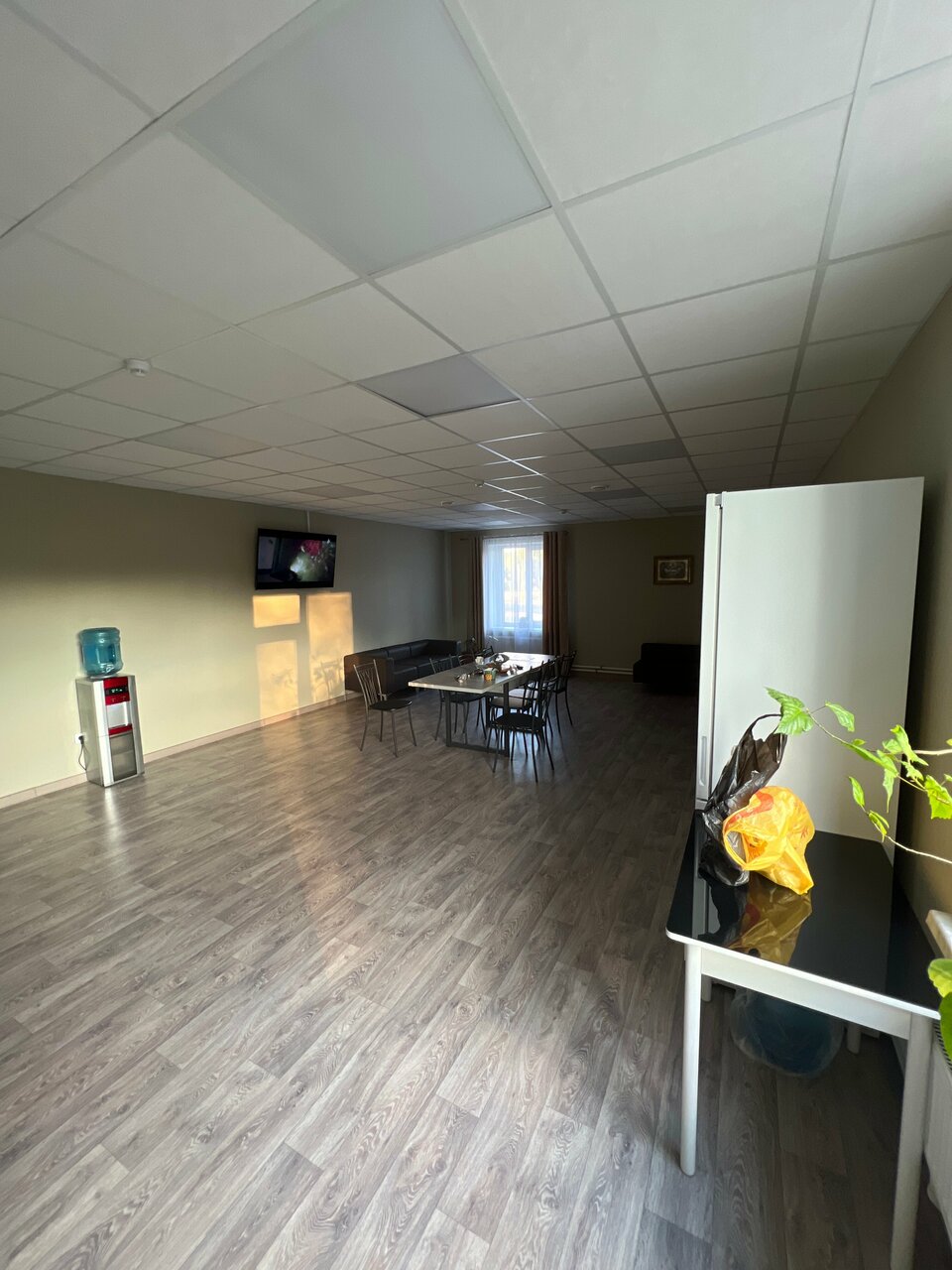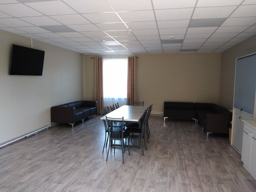 - Большой обеденный зал с микроволновкой, термопотом, холодильником, посудой и телевизором.