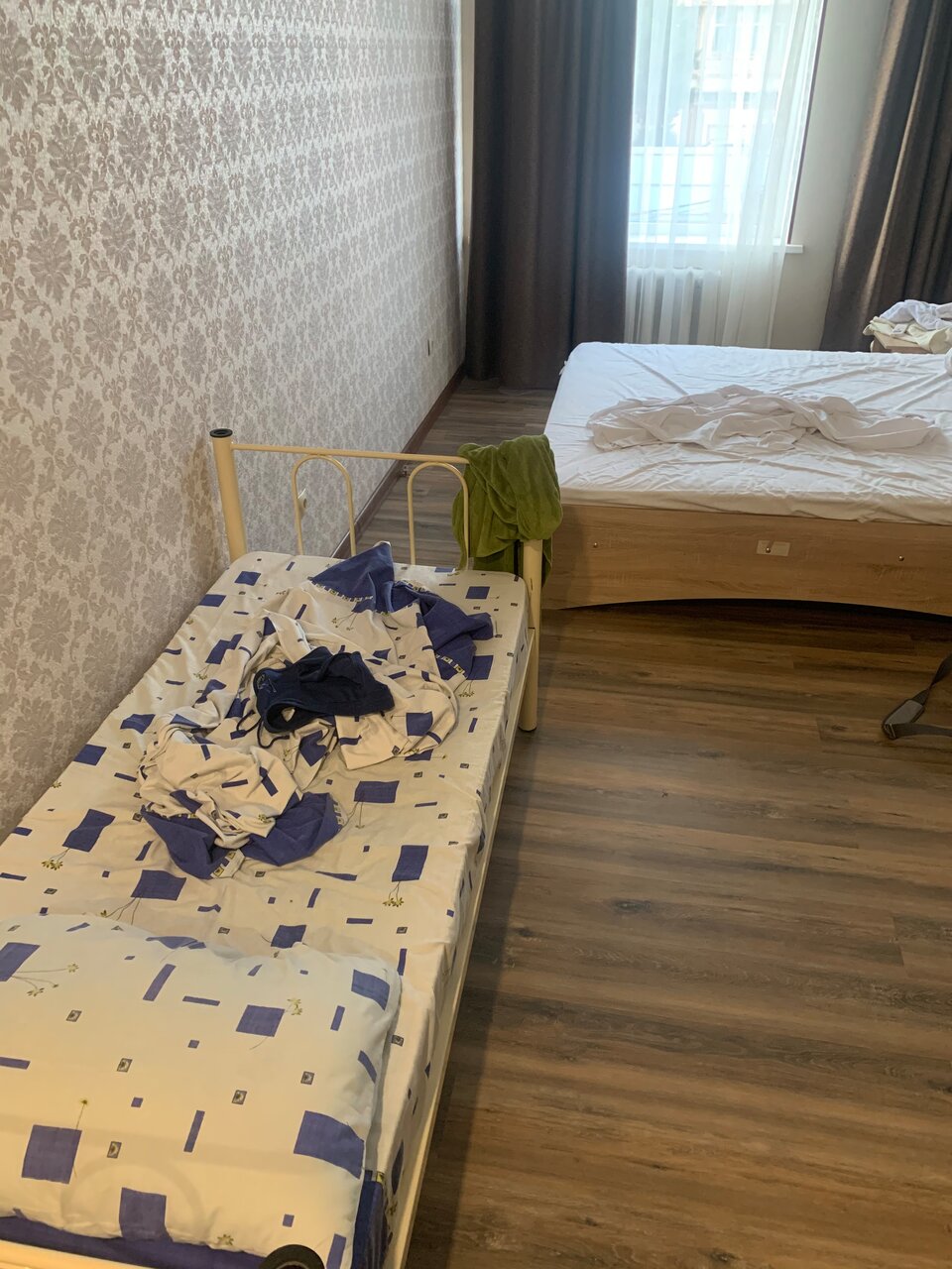 Гостиница работает 24ч в сутки, это очень удобно. Номер нам достался большой 5 местный. Чисто, прилично. Туалет, душ в номере. Если бы ещё чайник и холодильник был в номере было бы супер.