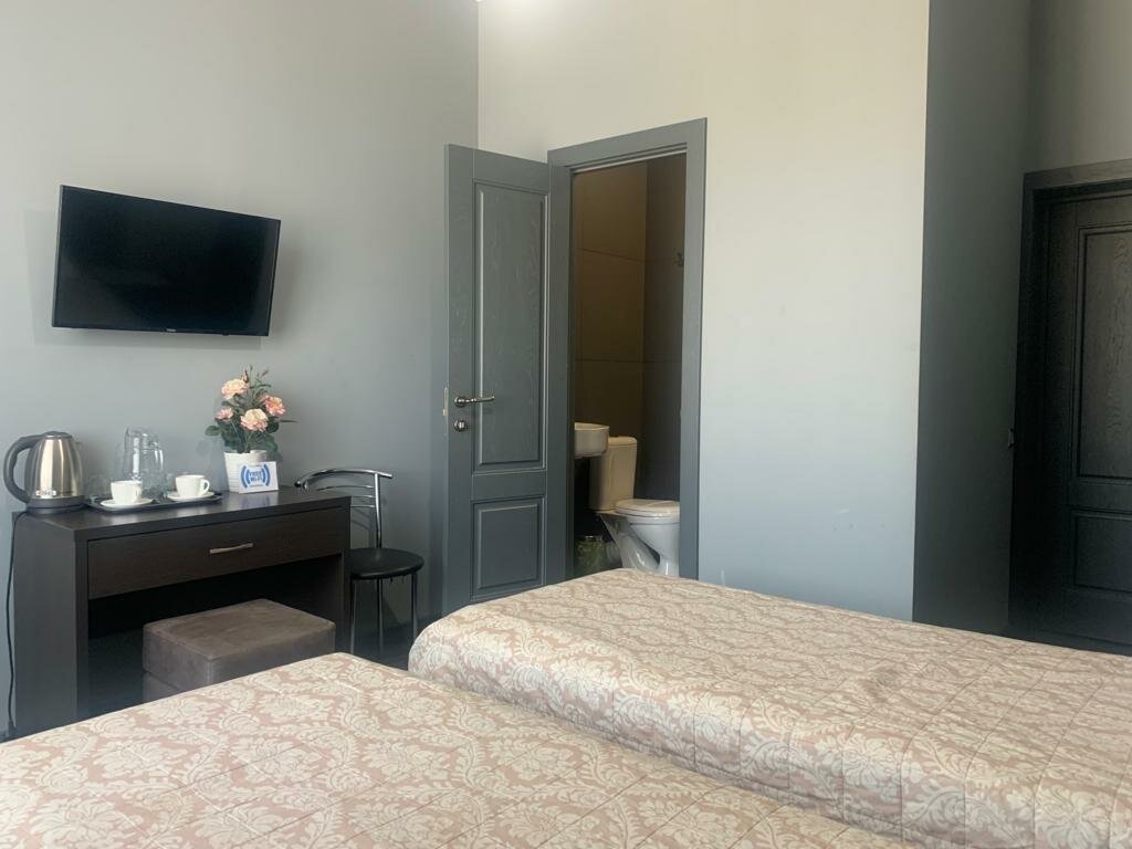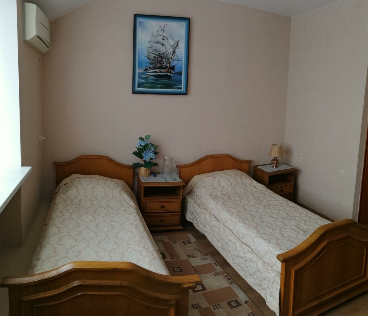 - Просторный номер с двумя кроватями, мебелью (шкаф, тумбочки, стулья).
