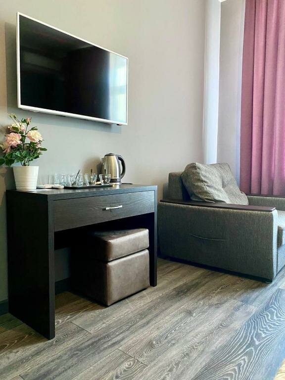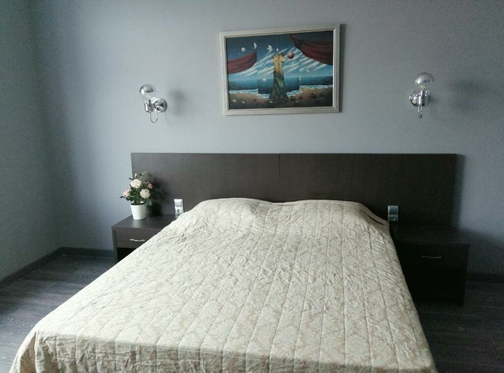 Комфортный номер с двуспальной кроватью и прикроватными тумбочками, общей площадью 20 м. кв.В номере:махровые тапочки, набор личной гигиены, душевая кабина, фен, LCD телевизор, шкаф-купе, два кресла, журнальный столик, беспроводной доступ в инт