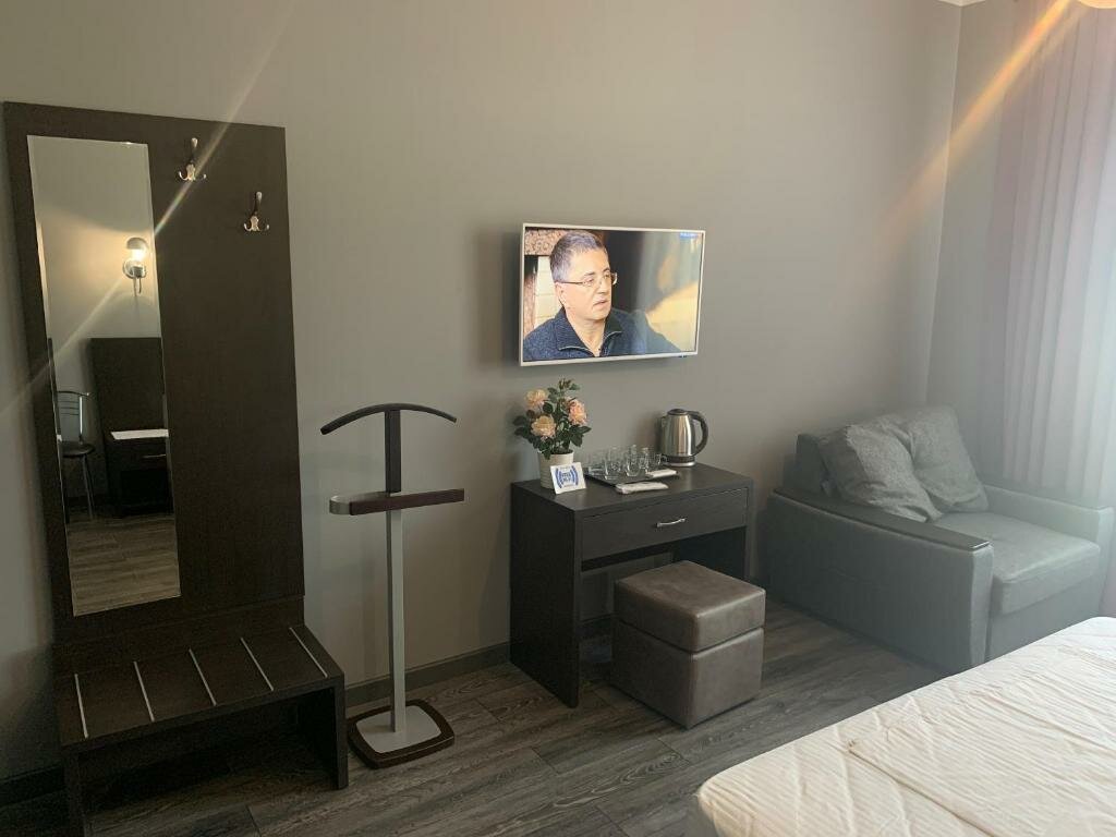Комфортный номер с двуспальной кроватью и прикроватными тумбочками, общей площадью 24 м. кв.В номере:махровые тапочки, набор личной гигиены, душ, фен, LCD телевизор / 3D SMART TV, кондиционер, сейф, телефоны внутренней связи, шкаф-купе, два кре