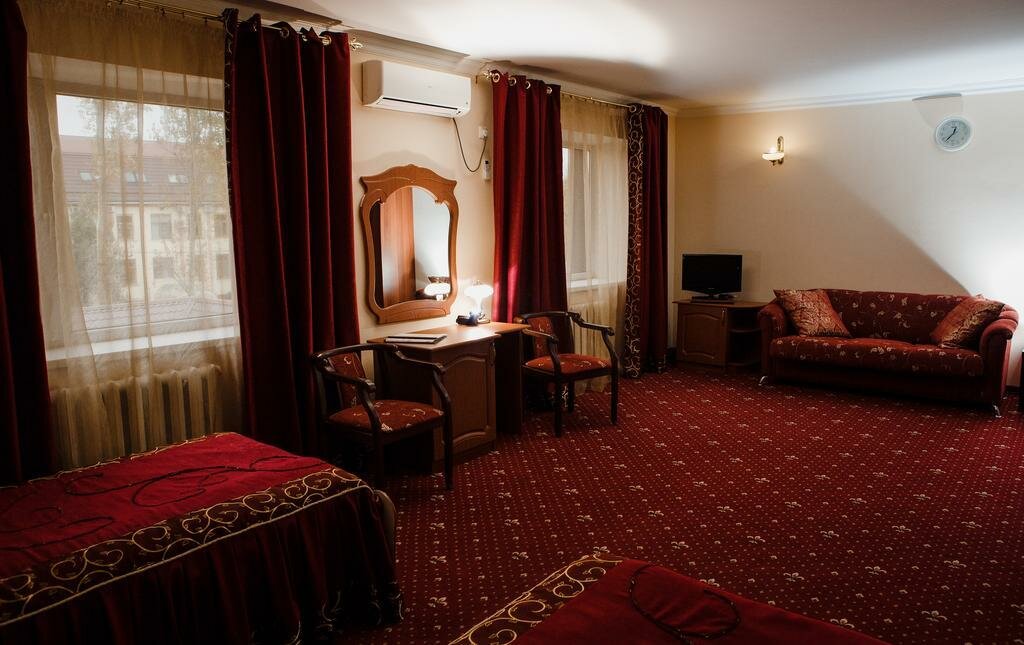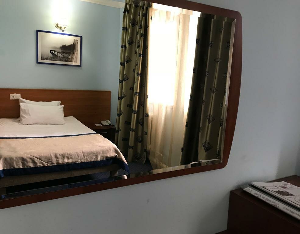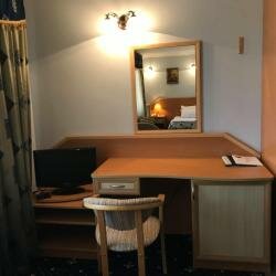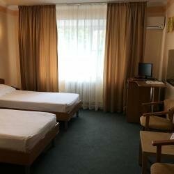 Остановились случайно, в другой гостинице мест не было. Взяли номер большой, нас двое взрослых и двое детей. Завышенная стоимость номера, гостиница таких денег не стоит явно. Ржавая вода в кранах (прогоняли очень долго, все равно была рыжая). А мы заселялись ночью, хотели спать, а помыться нереально(( Плохое освещение в номере. Скрипучие кровати, просыпались ночью. Крайне скудный завтрак, который входит в стоимость. Увы.