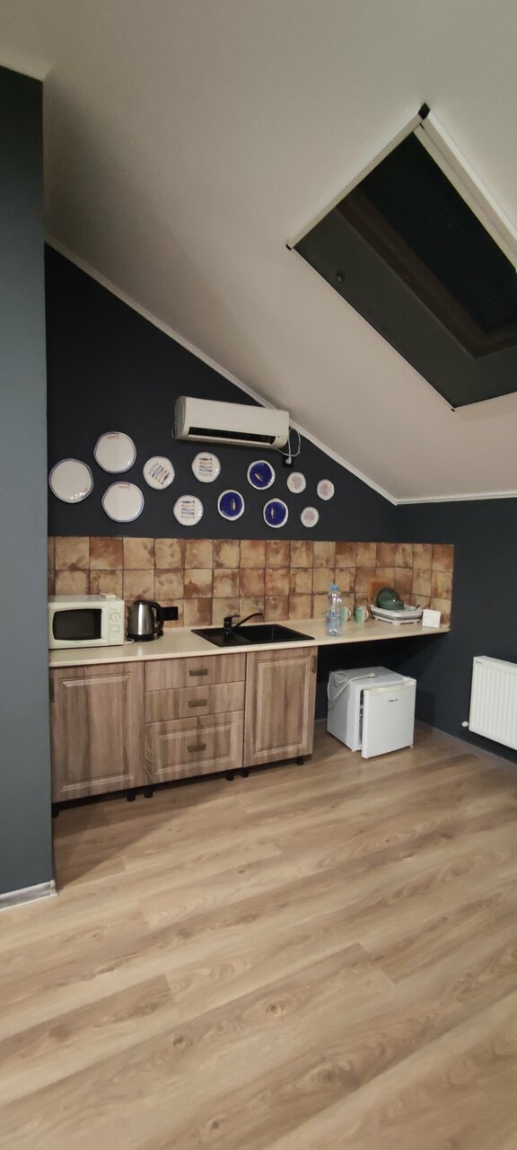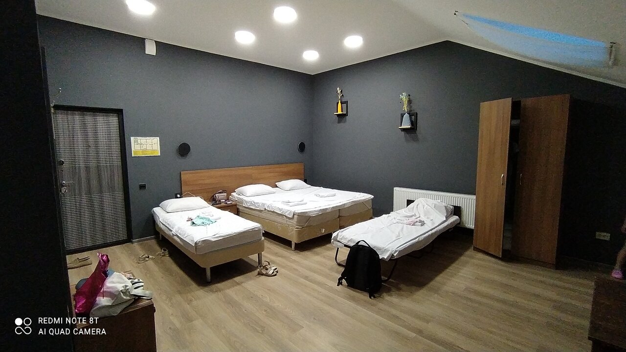 Останавливались на ночь по пути в Крым, сняли 3 номера 1 на 2м этаже и 2 на 3м, на 3м этаже более современные, в номере чайник, микроволновка, шумоизоляция норм, соседей не слышно