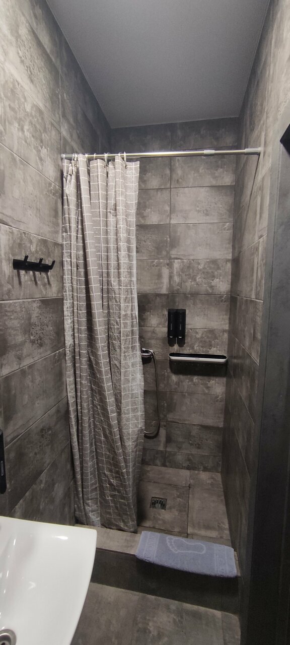 Отель подошёл по расположению., поэтому выбор пал на него. К сожалению, в нашем номере полы и стена в ванной оказались в плохом состоянии. Считаю, нельзя заселять гостей в такие номера. Если эти моменты исправить, всё будет ок. Маленький отель на 1 ночь по доступной цене