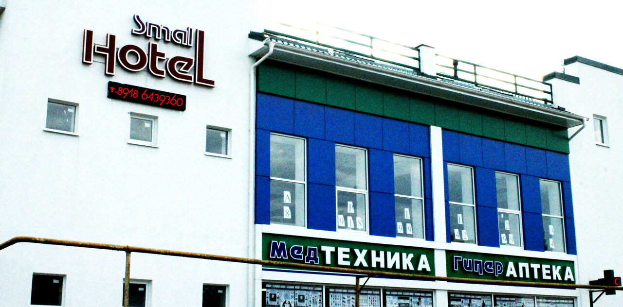 Small Hotel — небольшой современный мини-отель в центре Славянска-на-Кубани, расположенный по адресу ул. Ленина, 65. Открыт в 2015 году, работает круглосуточно. Предлагает недорогие номера с кондиционером, звукоизоляцией, Wi-Fi, телевизором, холодильником и феном. Доступны кухонные уголки в номерах и общая кухня. Гостиница принимает с животными, предоставляет бесплатную парковку и круглосуточную стойку регистрации. Заезд и выезд — в 12:00. Подробнее: smallhotel.pro, телефон: +7 (918) 261-96-81.