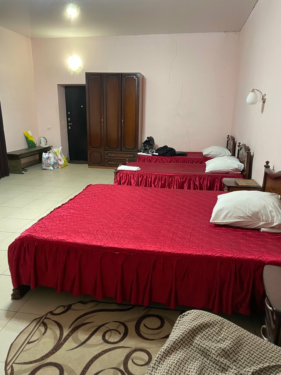 Нас встретил мужчина, который грубо с нами разговаривал, требовал оплату только наличными, заранее не предупредив, якобы у него вообще нет банковской карты. После просмотра номера, оставаться там желание отпало окончательно, старые диваны и не приветливое, грубое общение. Ночью нам пришлось искать новый отель.