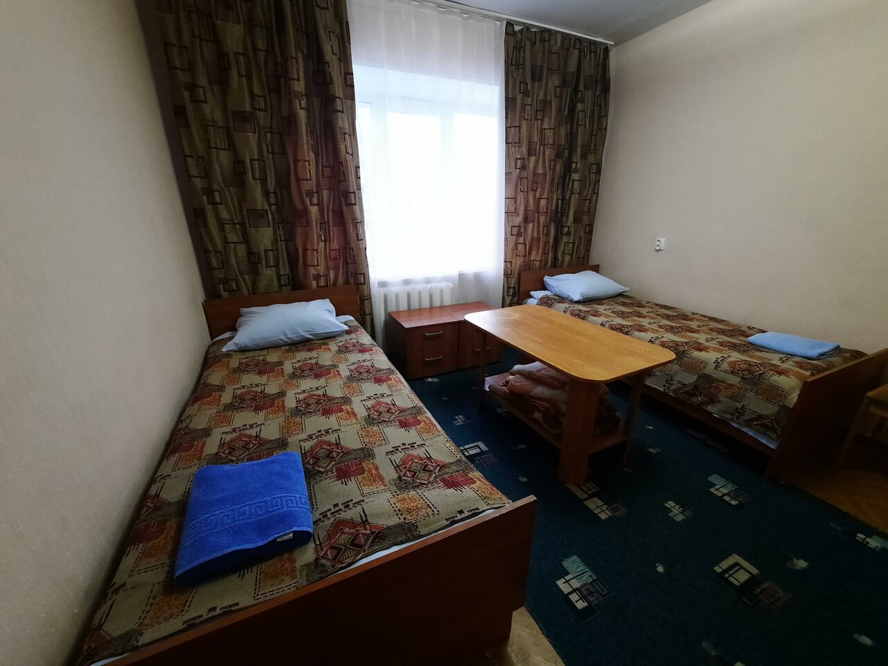 Уютный однокомнатный номер после ремонта, корпус Гамма 3*. Одноместное, Двухместное размещение. В номере прихожая и спальная комната с 2-я односпальными кроватями (90*200), рабочая зона с письменным столом, кресло, стул, мини-холодильник, телевизор