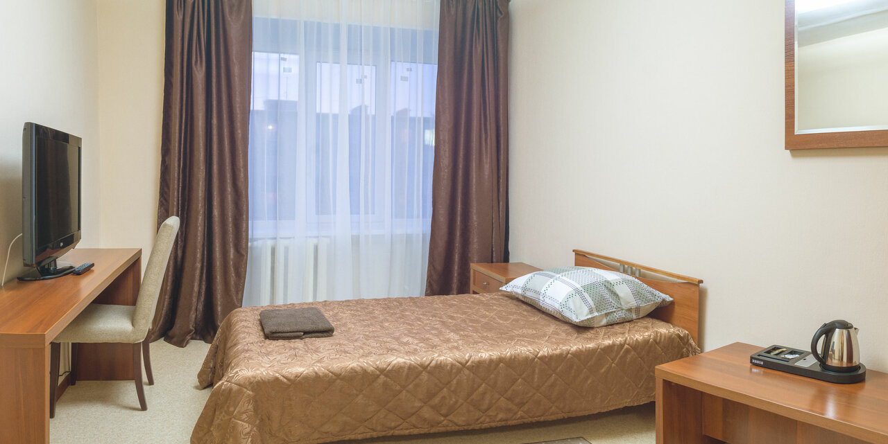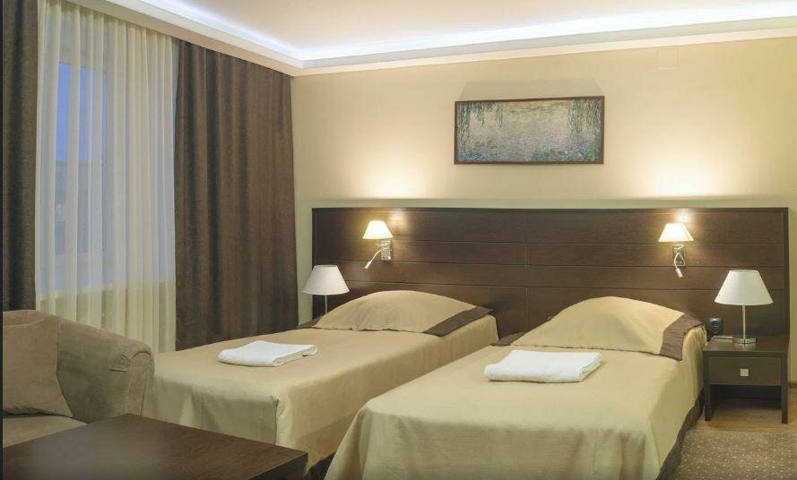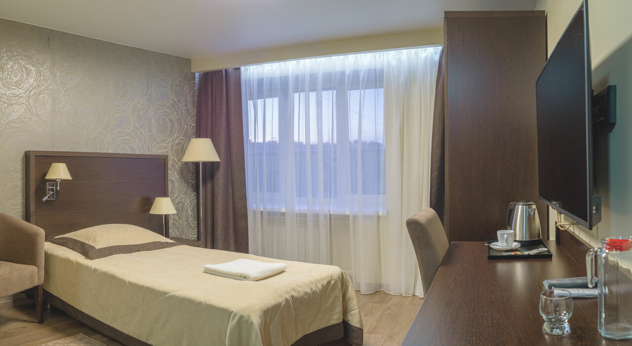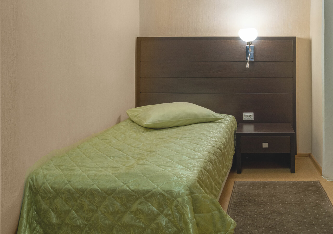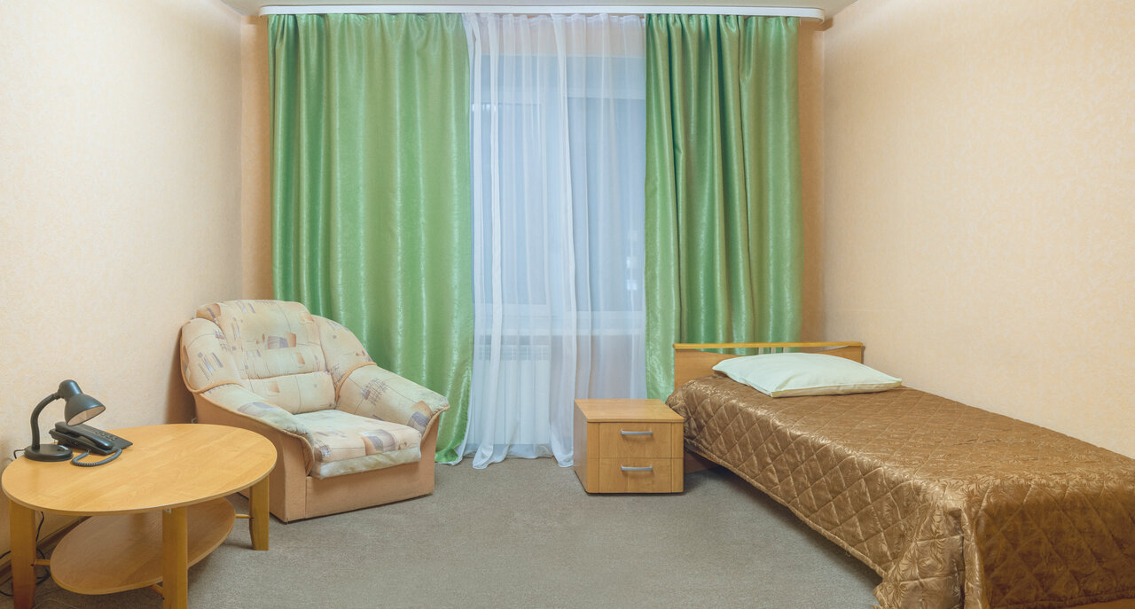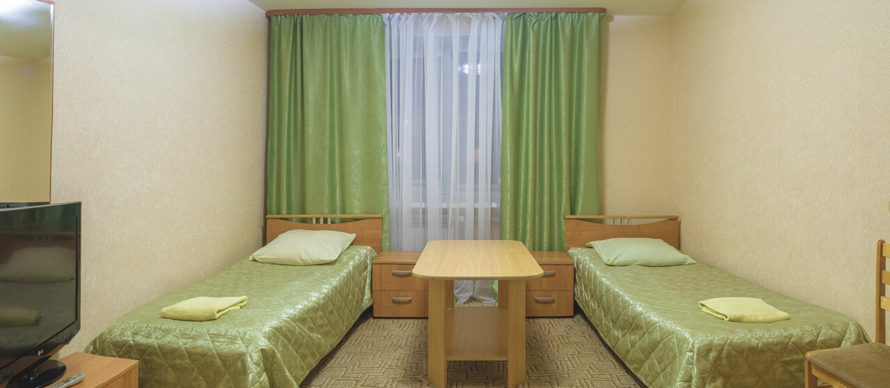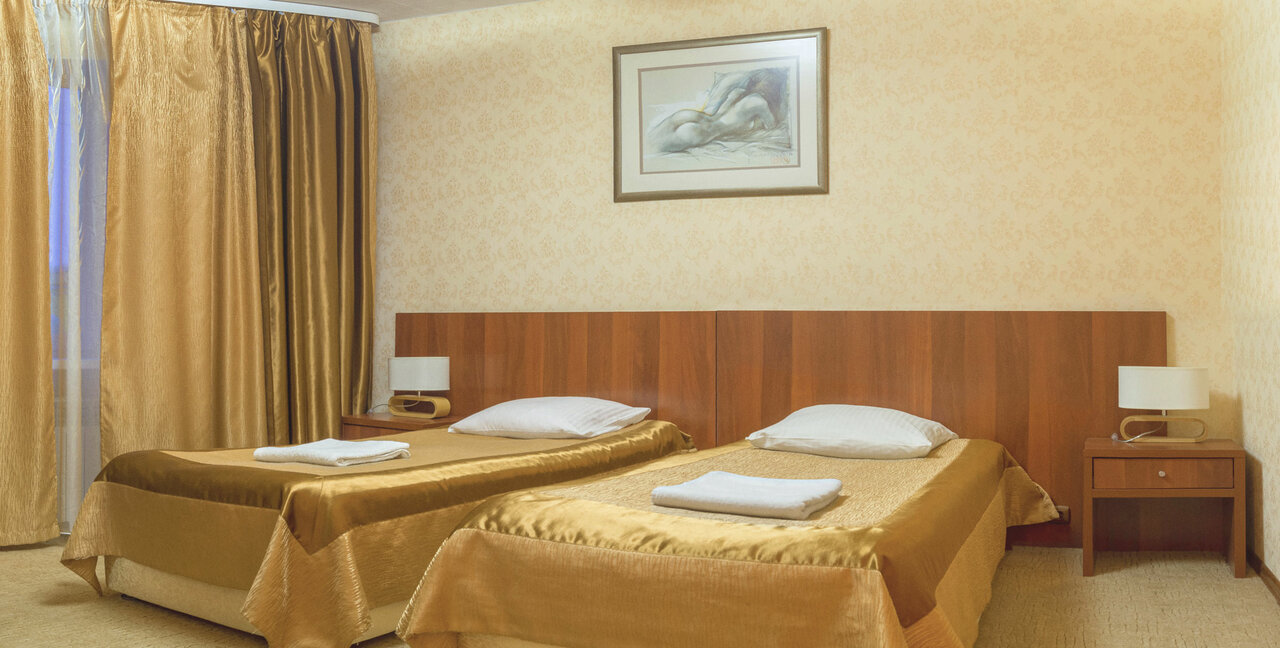 Комфортабельный однокомнатный номер после капитального ремонта, корпус Дельта 4*. Одноместное, Двухместное размещение. В номере прихожая, спальная комната с 2-я односпальными кроватями (90*200), 2 прикроватные тумбочки, 2 стула, журнальный столик.