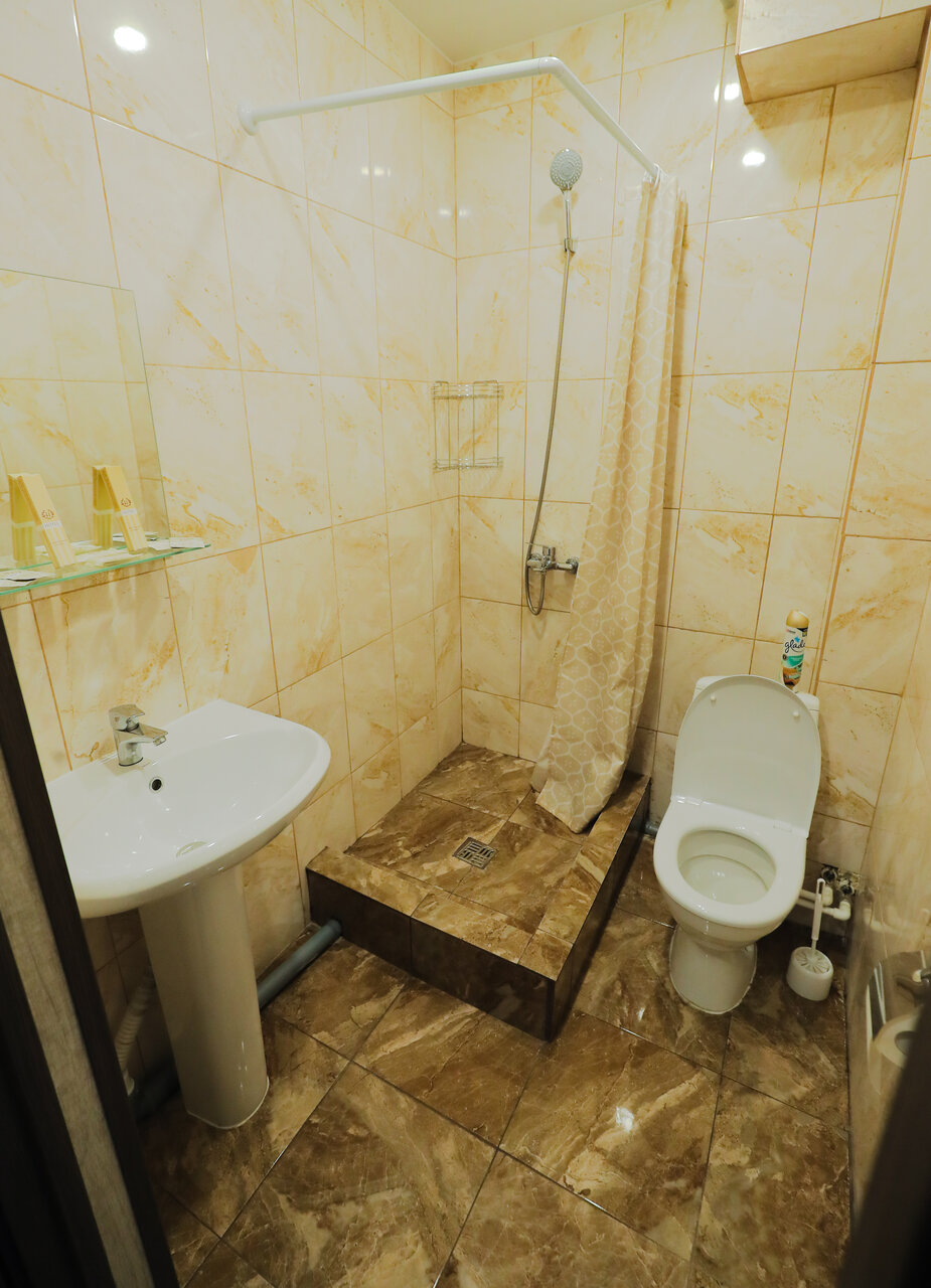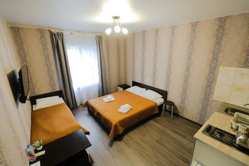 На одну-две ночи подойдёт. Слышимость такая, что кажется стен нет совсем. Слышно все, о чем разговаривают соседи. Достаточно чисто. В ванной комнате предоставлен набор для чистки зубов, шампунь, гель, мыло и все это в индивидуальных упаковках. Но, нет фена. Есть одноразовые тапочки. Для каждого проживающего имеется маленькое и большое полотенце, но нет для ног, хотя бы одного. Из душа выходить сразу на плитку голыми и мокрыми ногами и даже вытереть пол нечем. За три дня проживания уборки в номере не было. В комнате есть шкаф для вещей и телевизор, но обычные телеканалы отсутствуют, можно просто посмотреть какой-то фильм и то военный. Кровати очень не удобные. Продавленные и слишком мягкие матрасы, спокойно можно провалится или свалится с края. Ну о влажности помещения и говорить уже не буду. Приятный бонус- в номере есть бутылка с водой и шоколадка. Можно выпить бесплатно кофе в общей входной группе. Есть кулер с горячей и холодной водой.
