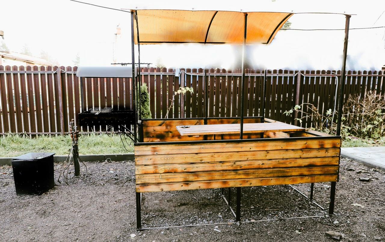 - Беседка с мангалом (шампура, уголь, розжиг предоставляются)