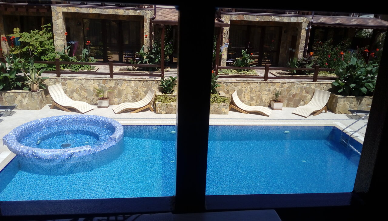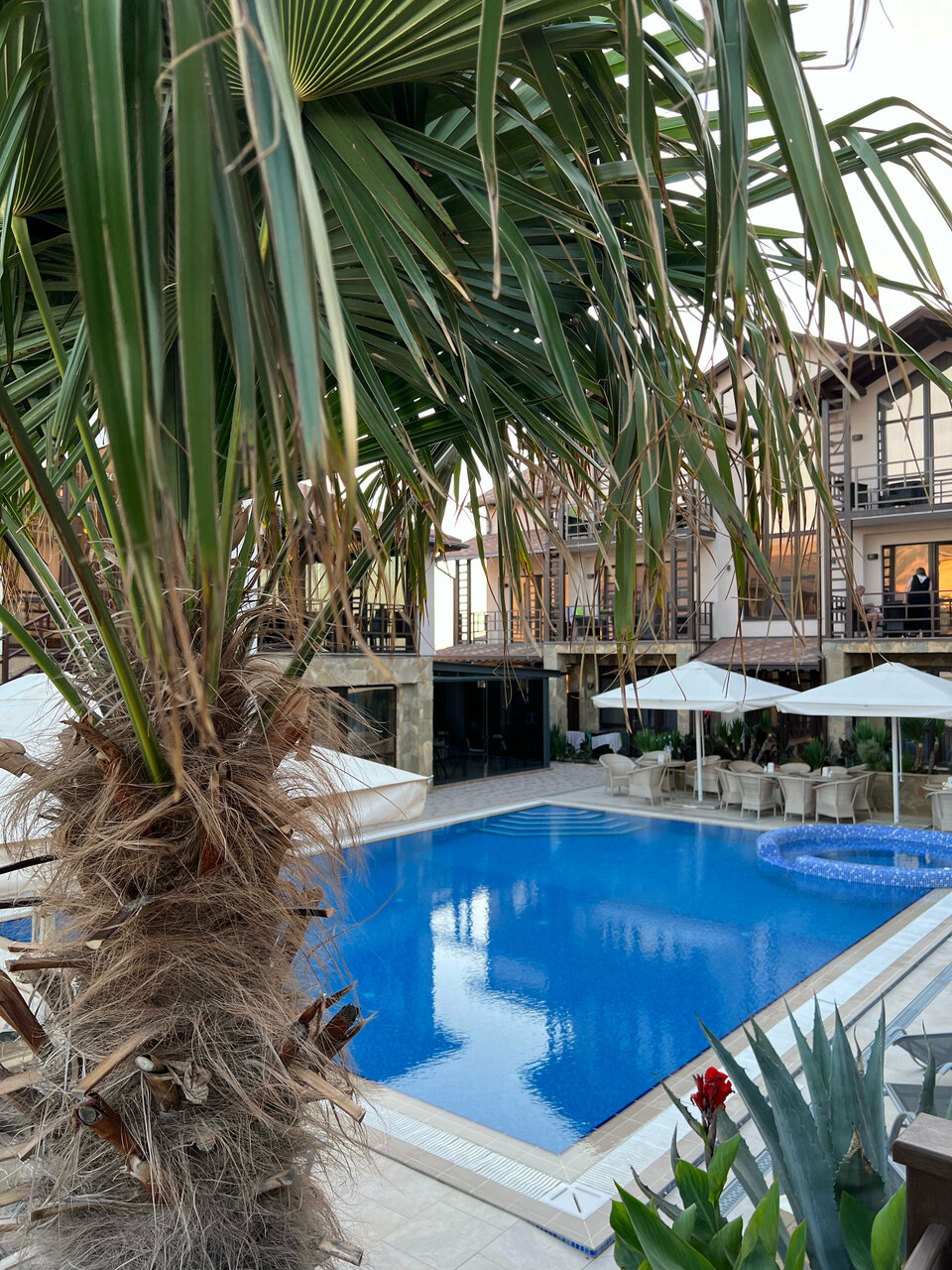Плюсы:чистые уютные номера, шикарный бассейн, вкусный ресторан, наличие бара, ухоженная территория, персонал, вокруг есть где погулять, походить. Особенности: до пляжа 1,5 км, до города 10, завтрак по дням недели, чайника в номере нет, есть в 10 минутах ходьбы магазин. Вывод: в данном отеле очень хорошо отдыхать при наличии собственного автомобиля или при отсутствии желания посещать что либо кроме ближайших гор и пляжей, а также чила у бассейна .