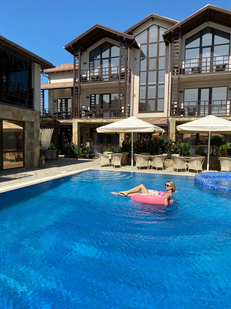 Пожалуй, лучший отель с бассейном за приемлемую цену очень вежливый персонал, помогли с трансфером. Есть неплохие велики в аренду — очень круто кататься по Меганому, сгоняли на пляж с другой стороны мыса) Судак недалеко, что тоже радует — можно быстро добраться до курорта, понять, что там слишком людно, и с радостью ехать в тихий отельчик) отдельно про еду — она просто топ)