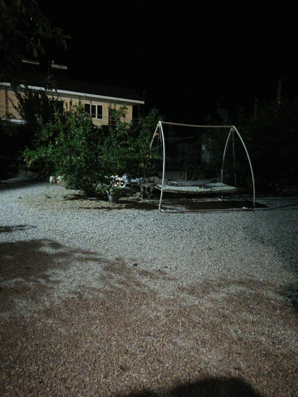 - Уютный двор с гранатовым деревом, качелями и лежаками.
