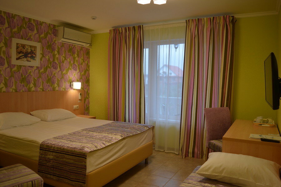 Хорошая территория, вечером можно посидеть во дворе, пожарить шашлык. Не всегда заселяют в те номера, которые бронируешь через сайт, т.к. они уже заняты, но узнаешь об этом по приезду. До моря пешком далеко, на машине 5 минут. Чистое море и пляжи