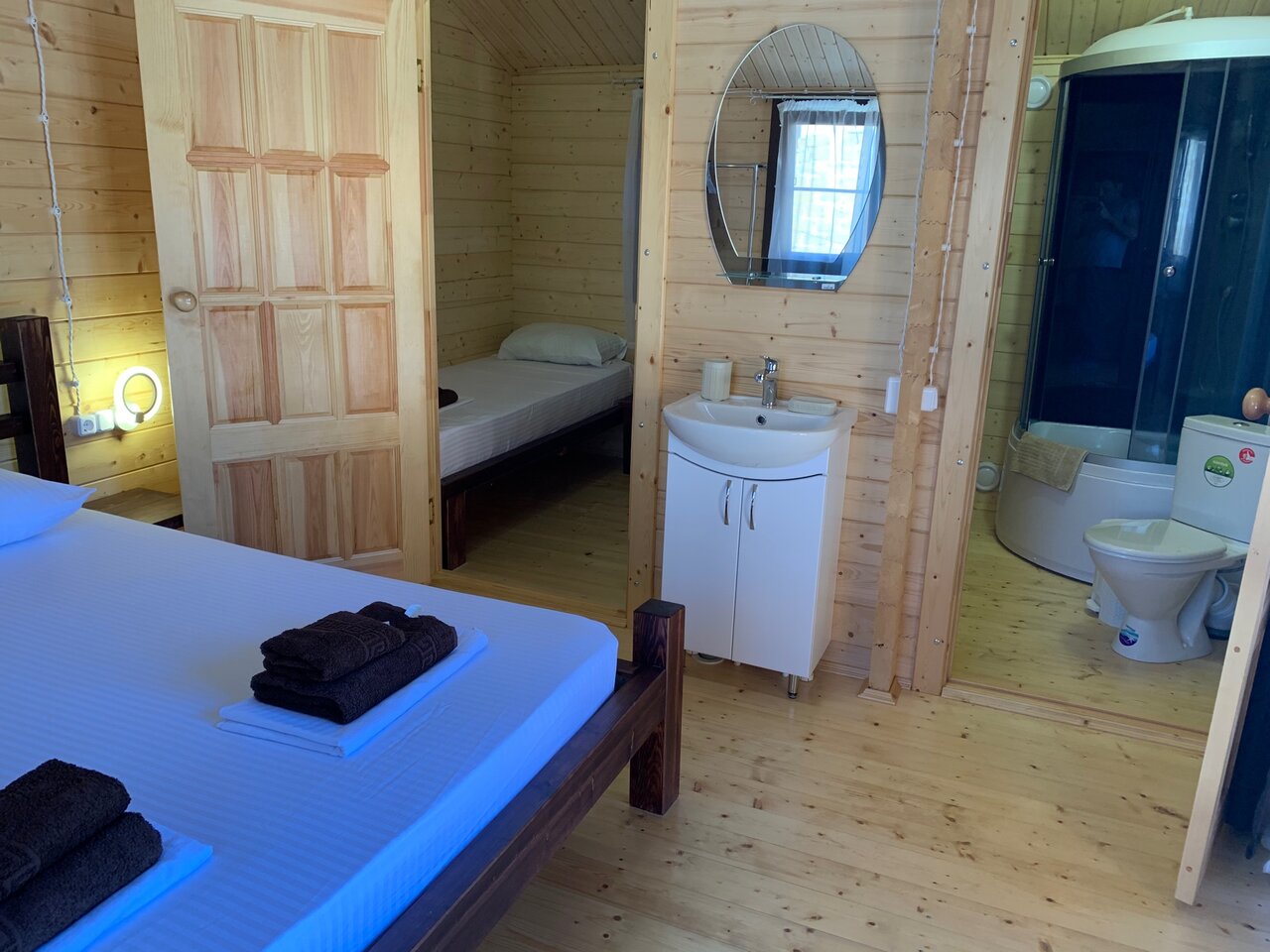 - Внимание к деталям, сделано с душой.; Небольшой бассейн и чил-зона.; Наличие турника для активного отдыха.; Ухоженные домики.; Трансфер до пляжа за 100 руб.
