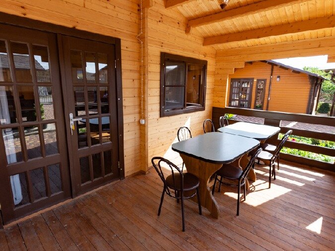Рекомендую. Хорошее спокойное место для отдыха с семьей. Большая территория для гостевого дома. Есть бассейн, кухня, могут организовать рыбалку. Есть уютные древянные домики на первом этаже.