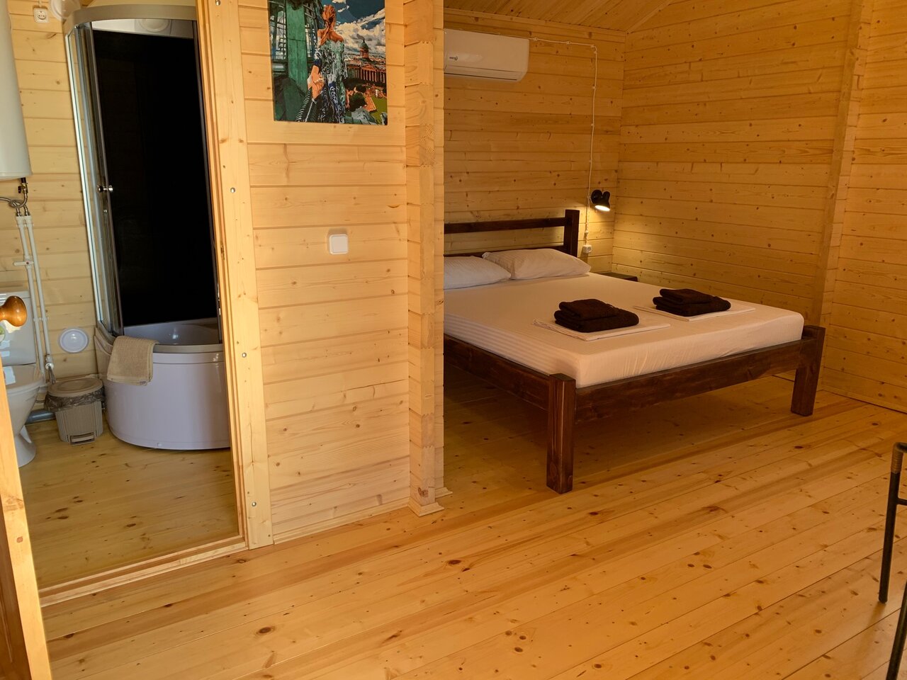 - Полностью оборудованные домики (бытовая техника, посуда).