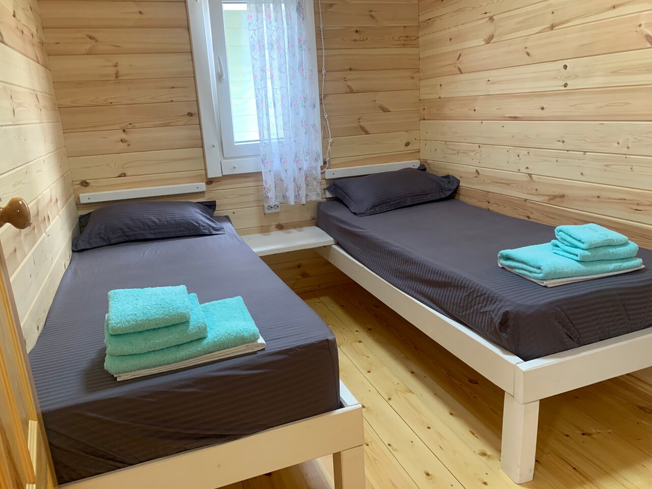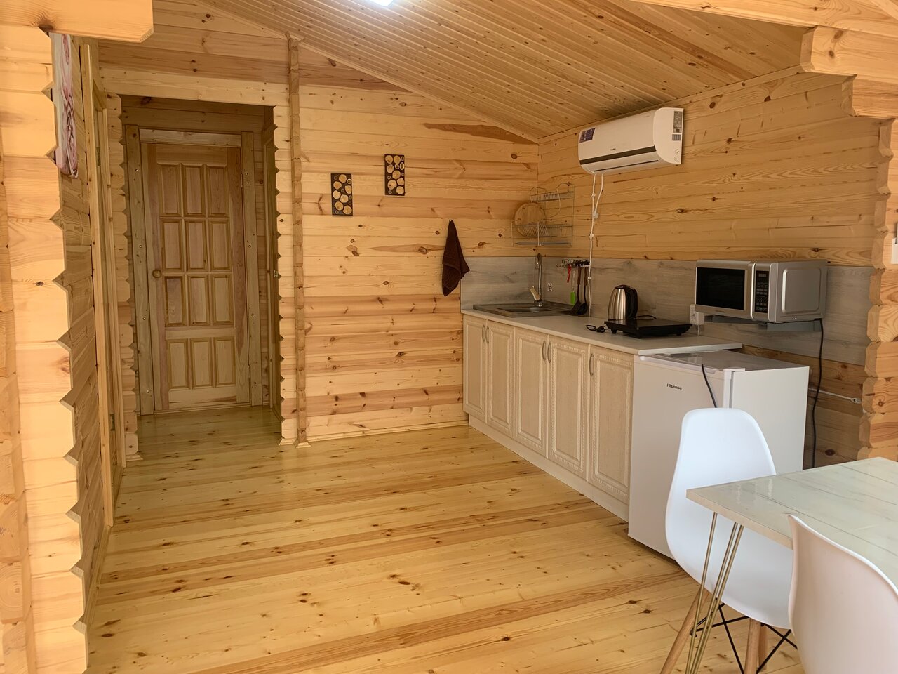 Домики все новые и ухоженные, есть небольшой бассейн и чил зоной, турник (что немаловажно для активного отдыха), отдельная кухня и беседки, зона барбекью одна. Понравилось, что есть определённые условия для проживания после 23:00 и до 7:00 не шуметь, очень важно для размерного тихого отдыха. Могут довезти до пляжа за отдельную плату в одну сторону всего 100 рублей. Видно , что все сделано по уму и с душой.