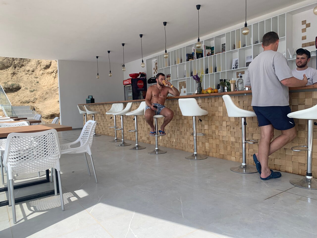 Удобства: — Открытый бассейн, баня, летняя веранда, сад, виноградник. — Бесплатная парковка, Wi-Fi, общая кухня, прачечная. — Номера с кондиционером, холодильником, телевизором, санузлом и кухонным уголком. — Трансфер (платный), прокат оборудования для активного отдыха, настольный теннис. — Песочно-галечный пляж с шезлонгами и полотенцами.