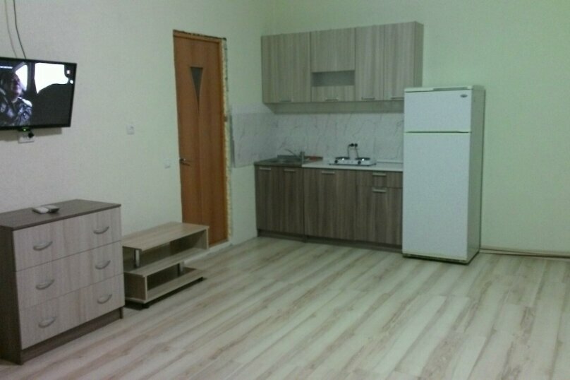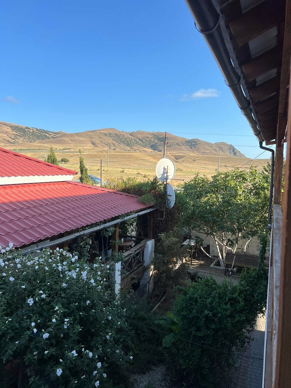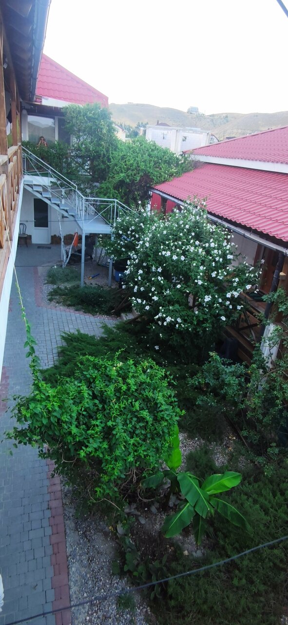 Приехали в конце сентября. Комнаты показывал муж хозяйки. Сказал, что людей уже нет. Сложилось яркое впечатление, что нам тут не рады. Комнаты внизу очень тёмные, экранчик телевизора меньше самой маленькой микроволновки. Впервые такое видела. Наверху комната с террасой хорошая, но отдали предпочтение другому гостевому дому. Заглянула на общую кухню — там как-то грязновато. В конце сентября нам предложили комнату внизу за 1200р. Но такие комнатушки мы снимаем в разгар сезона за 1000р. Двор тоже показался немного неухоженным. Не обижайтесь, но нам есть с чем сравнивать