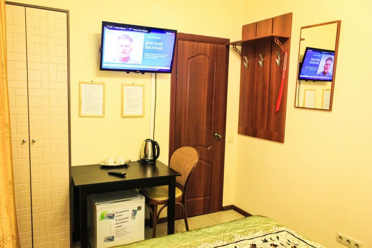 Заехали вечером, нам дали ключ от номера. Чистенько, но! Когда включила холодильник, то с полочки потекла вода, много воды! Тапочек, заявленных при бронировании номера, не было. Позвонили администратору попросили убрать воду и спросили на счет тапочек — их нет и не будет ((( Туалет/ванна совмещенные, места мало. Я высокая, постоянно стукалась о железную полку, неудобно закреплена. Вода в душе плохо уходит( На ресепшене девушку видели только при заезде, вечером после того, как заселились, решили прогуляться, ключ пришлось оставить на стойке. Никто не следит за ключом от номера, хоть номер выноси((( больше останавливаться там не будем.