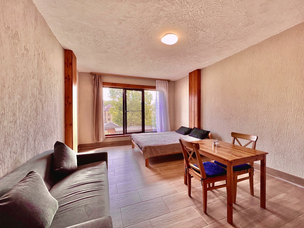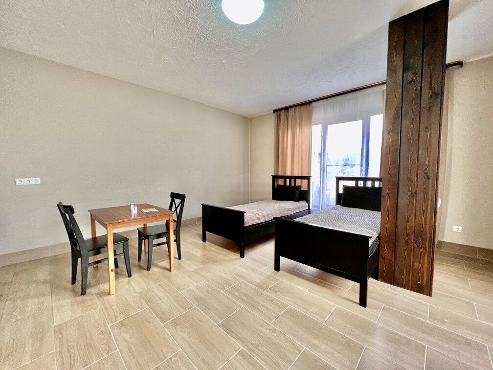 Все супер, просторно Мягкие матрасы, плотные шторы, что хорошо если хочешь подольше поспать) Теплые полы, и достаточно чисто