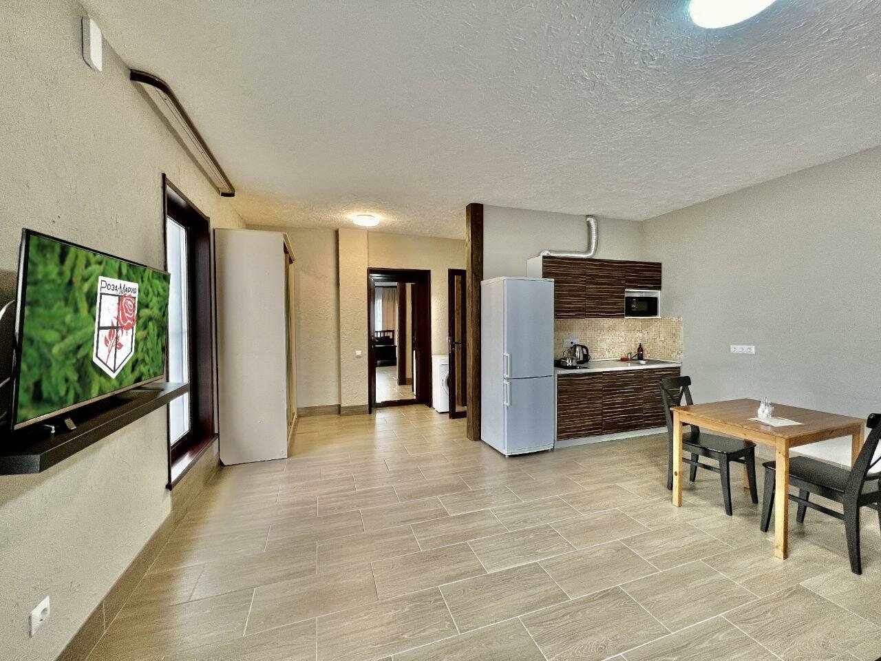 - Наличие кухни, холодильника, микроволновки, посуды.