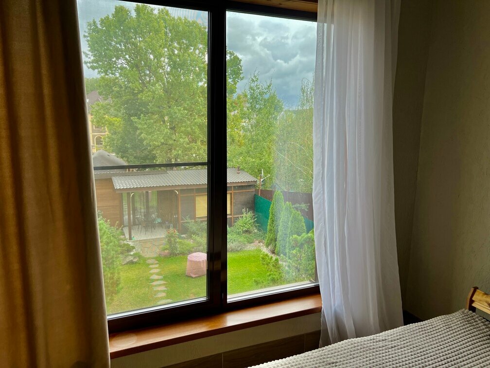 Выбрали этот вариант для встречи друзей, ориентируясь на тех, кто в Москве транзитом, через Внуково. Жили в двухэтажном номере и двухместном шале. Если бы не стойкий запах табака, всё было бы совсем отлично. Но это моё ощущение. Ребята, кто курят, даже не заметили. Холодильники, плиты, посуда, микроволновки, чистое постельное бельё и полотенца. Персонал ненавязчив. Не стерильная чистота, но и не явная грязь. Без особых изысков, но вполне прилично и по цене приемлемо. Выезд в 9 утра. Нам это было удобно. Внутренний дворик очень уютный. С маленьким водопадиком и креслом-подвеской. Рекомендую отель.