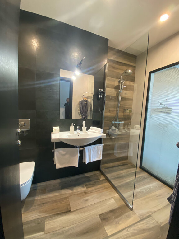 Не отель, а сауна с возможностью переночевать. Общей зоны нет, еду накрывают в номере. В номерах чисто, шкафы отсутствуют, вещи вешать некуда. Дизайн номеров и отделка очень приятная. Персонал очень приветливый, общая организация средняя.