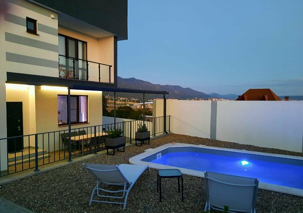Очень красивый, современный дом, теплый бассейн, в двух шагах — лес, полное единение с природой, до моря и до центра Геленджика совсем близко