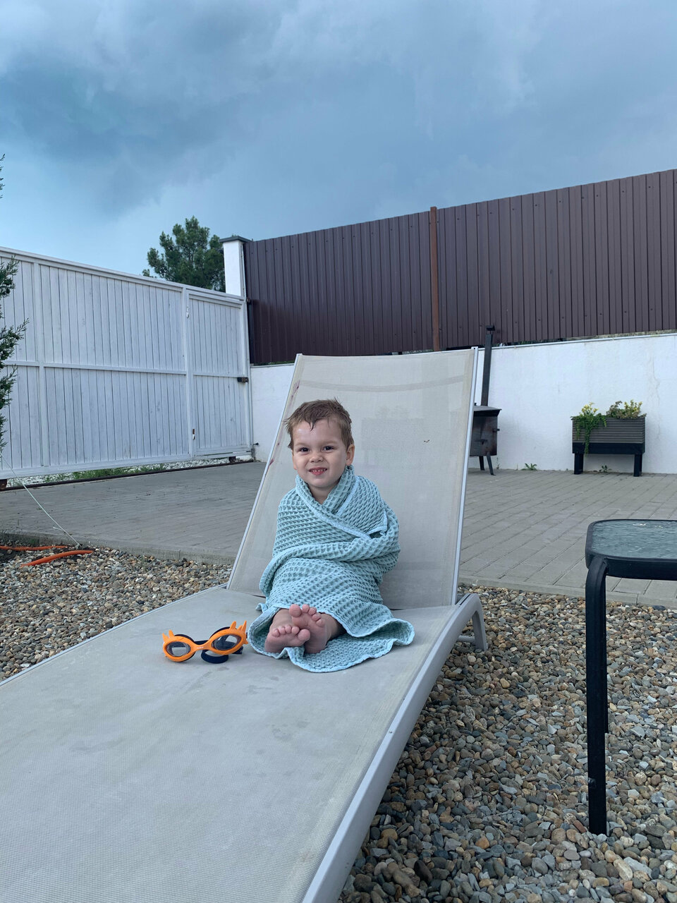 Обожаю веранду этого дома ! Вечером там ужинали все вместе, участок подсвечивается , бассейн тоже , высажены растения, пока не большие, но уже радуют глаз! Колонка Алиса очень кстати , для создания настроения и атмосферы, мангал есть, кстати, очень хороший рынок есть в городе , все покупали там и еще с собой увезли в Москву)