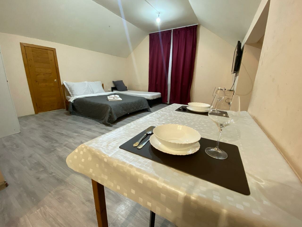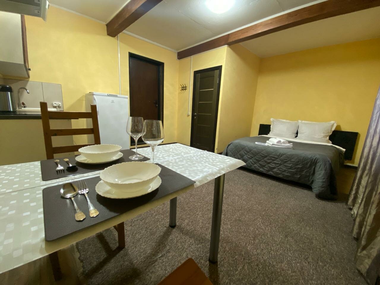 - Уютная обстановка.; Вовремя сданный номер.; Хорошее соотношение цены и качества.; Горячая вода, исправный душ и туалет.; Чистое постельное белье и полотенца.