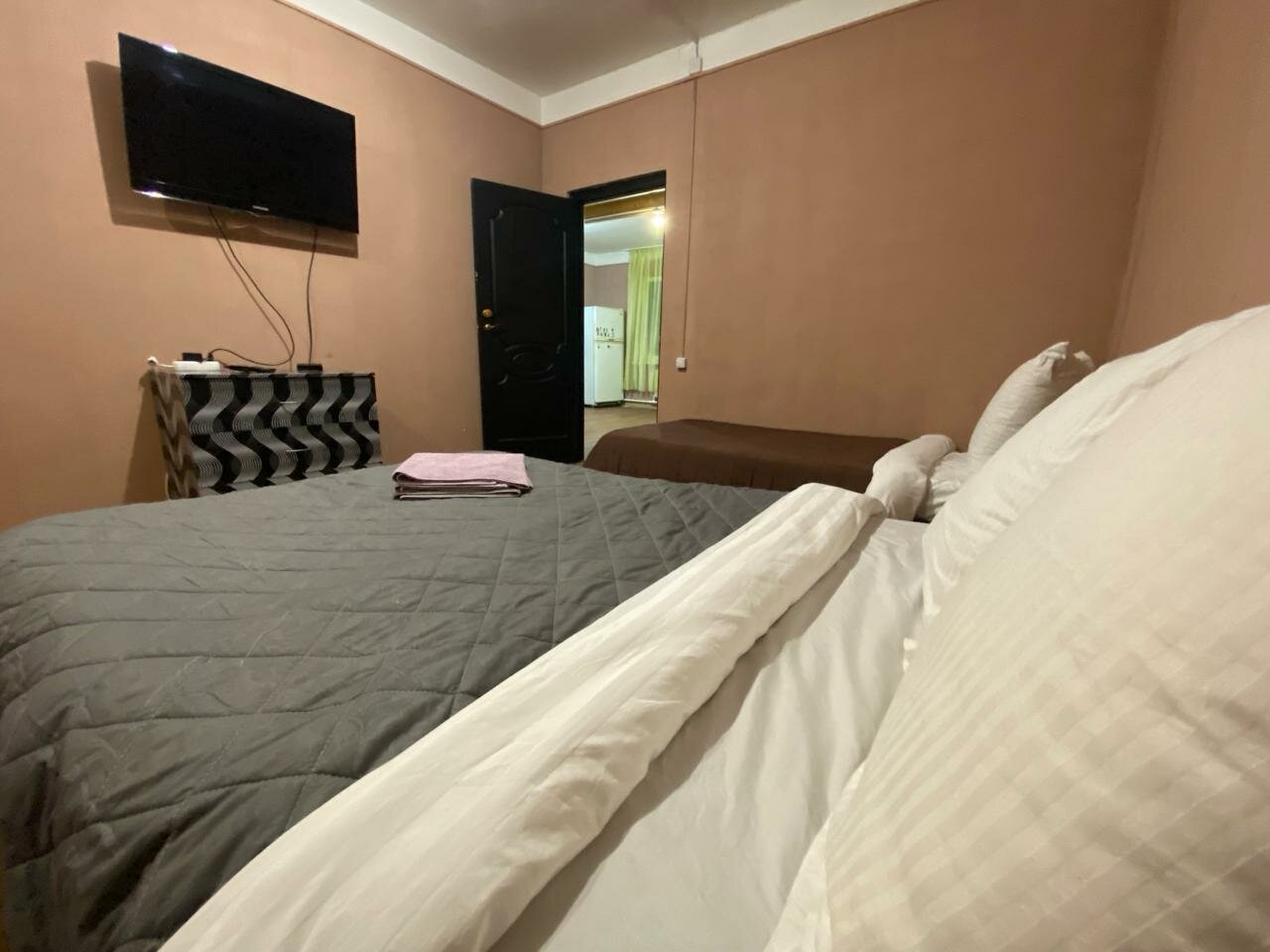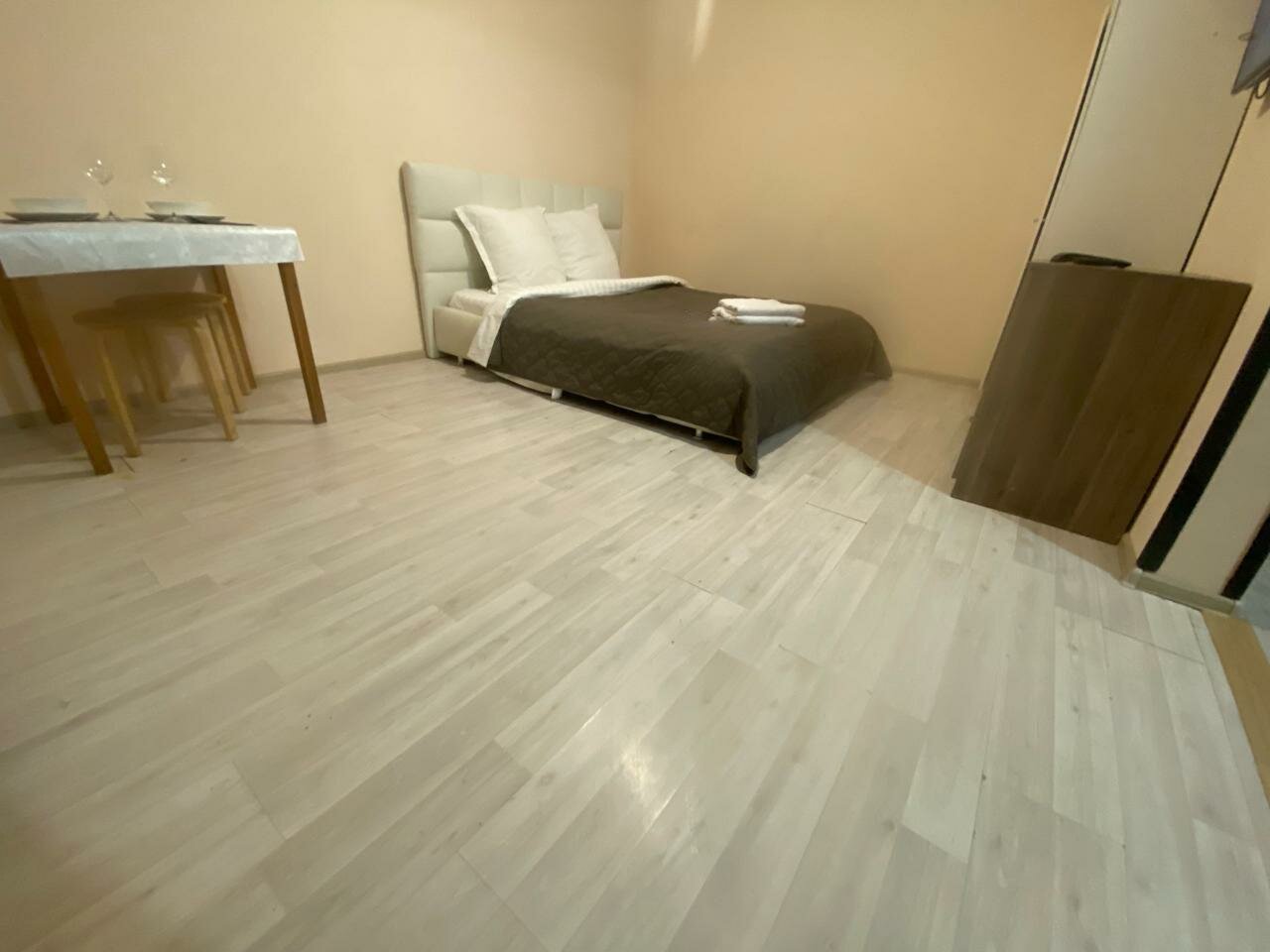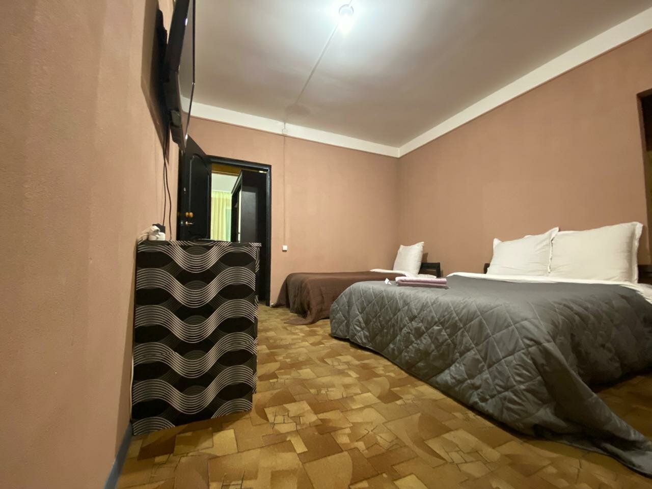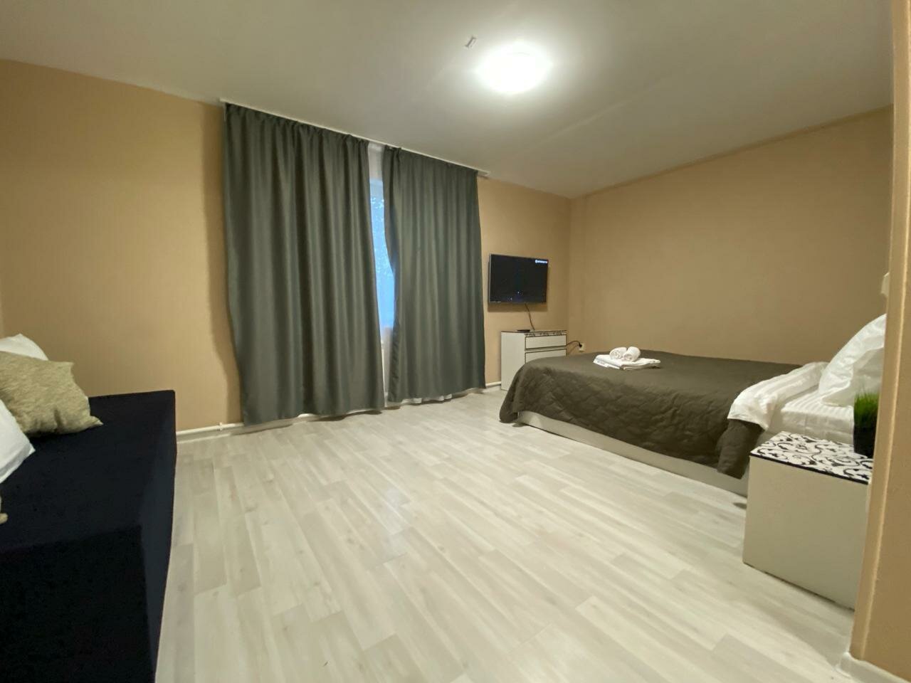 Одна звезда — это слишком много для данного заведения. Звездочка просто за то, что номер, вместо однокомнатного, оказался двухкомнатным. Бронь через Яндекс была. Фото на Яндексе и фото в реальности сильно отличаются. Никто не встречает. Прибыв на место нужно звонитб по номеру, чтоб хоть кто-то вышел. Поселить могут, кого угодно. Обычно при заселении у гостиницу сканируют документы тех, кто будет там жить. Тут просто поинтересовались: оплатили или нет. На ванной желтые пятна, плитка под ногами ходит, полы грязные, ловушки для тараканов. Соседи делятся своими музыкальными предпочтениями почти до глубокой ночи. На окнах нет антимоскитных сеток. Всю ночь кусали комары. Никому не рекомендую.