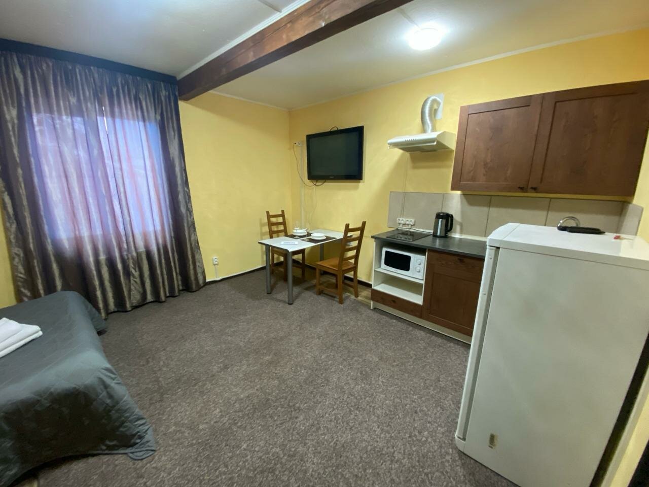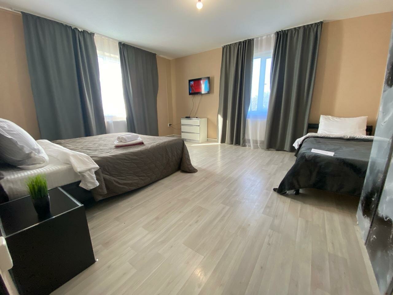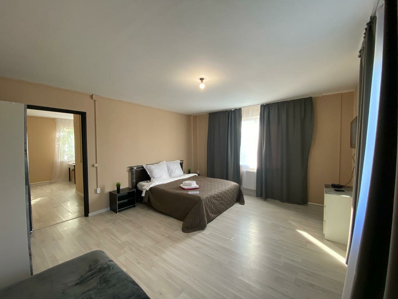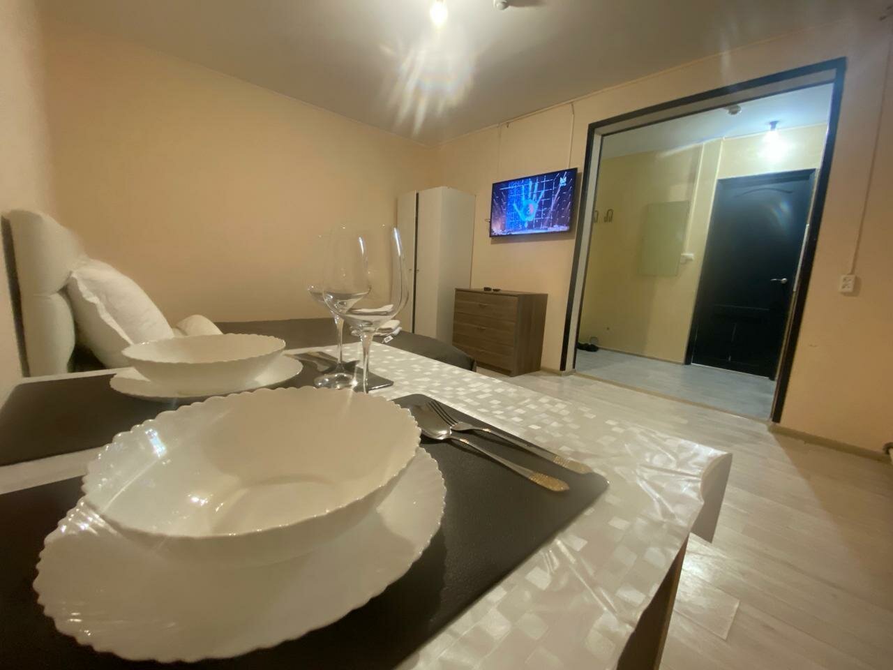 Одна звезда — это слишком много для данного заведения. Звездочка просто за то, что номер, вместо однокомнатного, оказался двухкомнатным. Бронь через Яндекс была. Фото на Яндексе и фото в реальности сильно отличаются. Никто не встречает. Прибыв на место нужно звонитб по номеру, чтоб хоть кто-то вышел. Поселить могут, кого угодно. Обычно при заселении у гостиницу сканируют документы тех, кто будет там жить. Тут просто поинтересовались: оплатили или нет. На ванной желтые пятна, плитка под ногами ходит, полы грязные, ловушки для тараканов. Соседи делятся своими музыкальными предпочтениями почти до глубокой ночи. На окнах нет антимоскитных сеток. Всю ночь кусали комары. Никому не рекомендую.