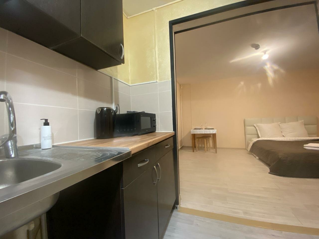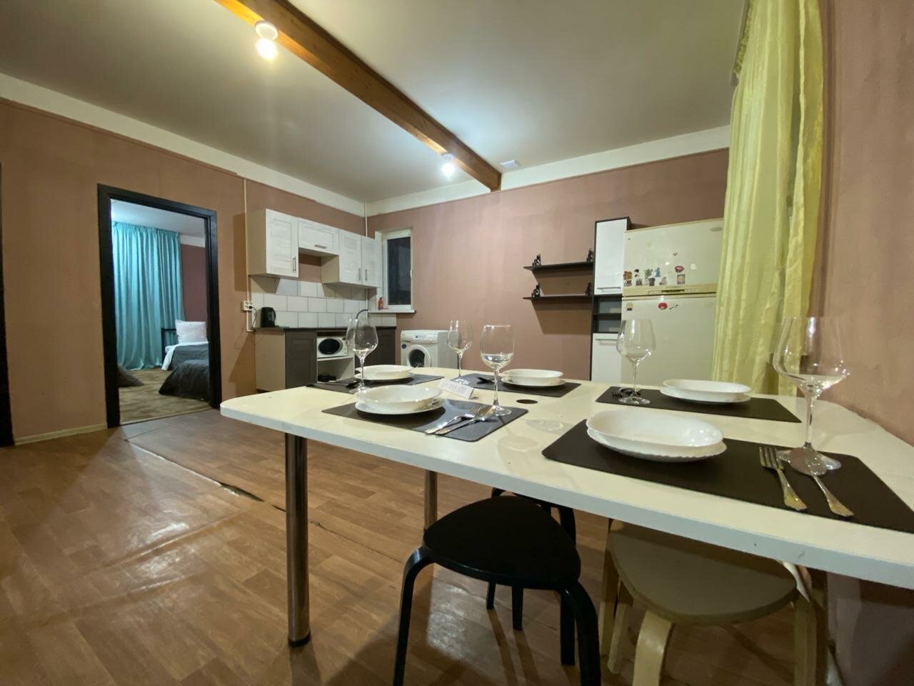 Хорошее место. Уютно. За свои деньги прям пять баллов. Чистая комната, постельное, полотенца, все средства в наличии (мыло, шампунь, для посуды) рядом супермаркет. В общем все устроило. Буду ещё тут останавливаться